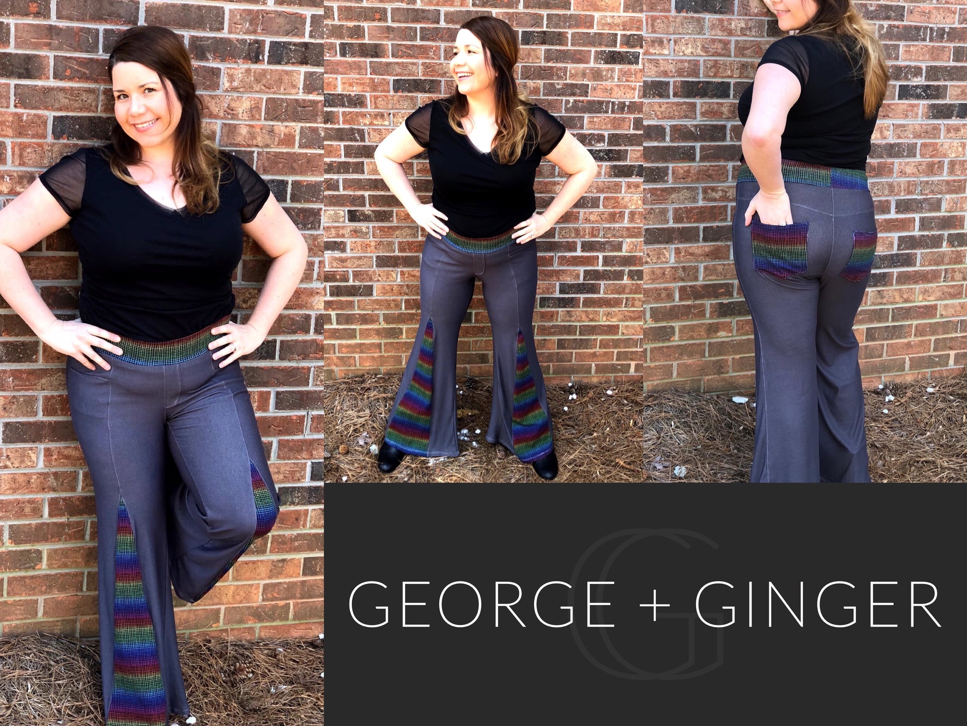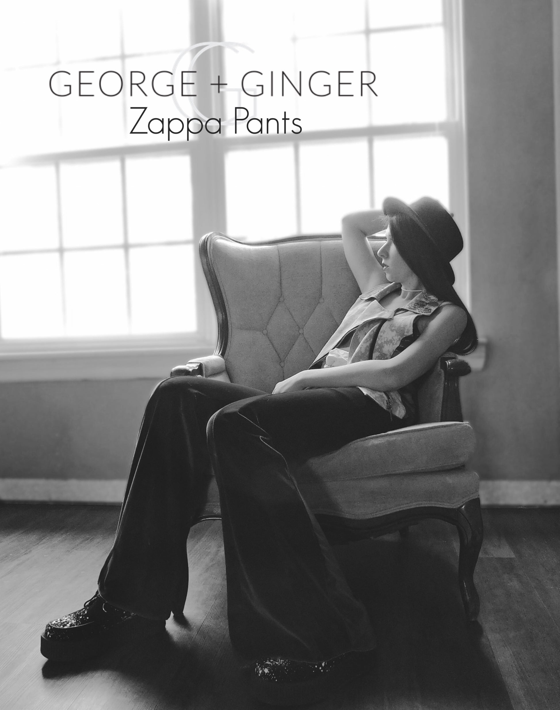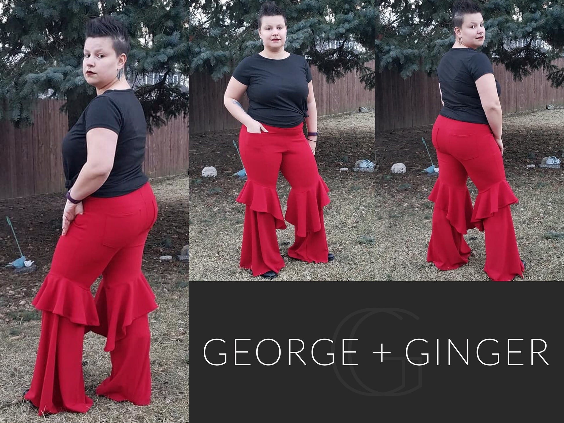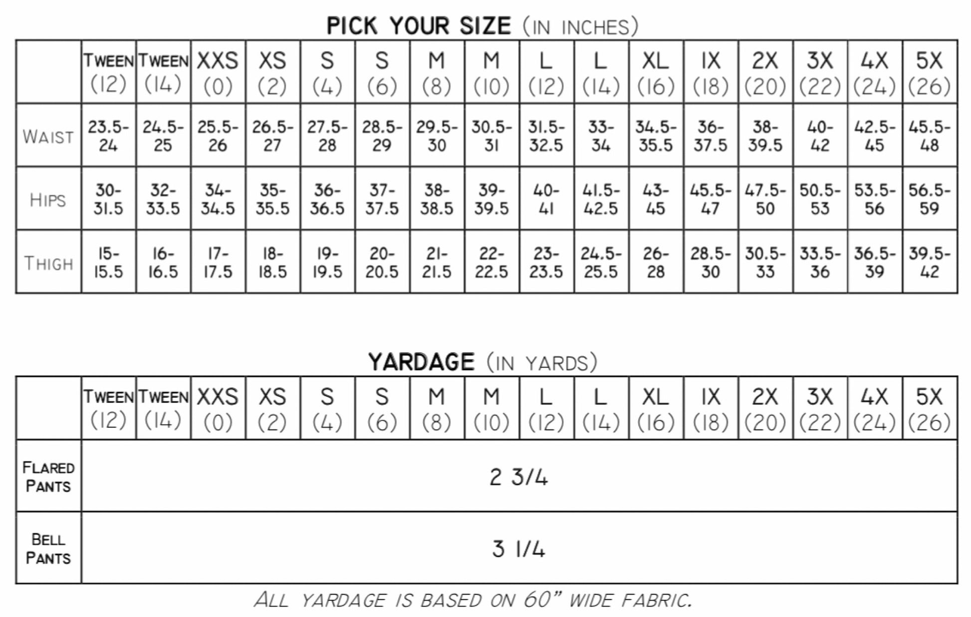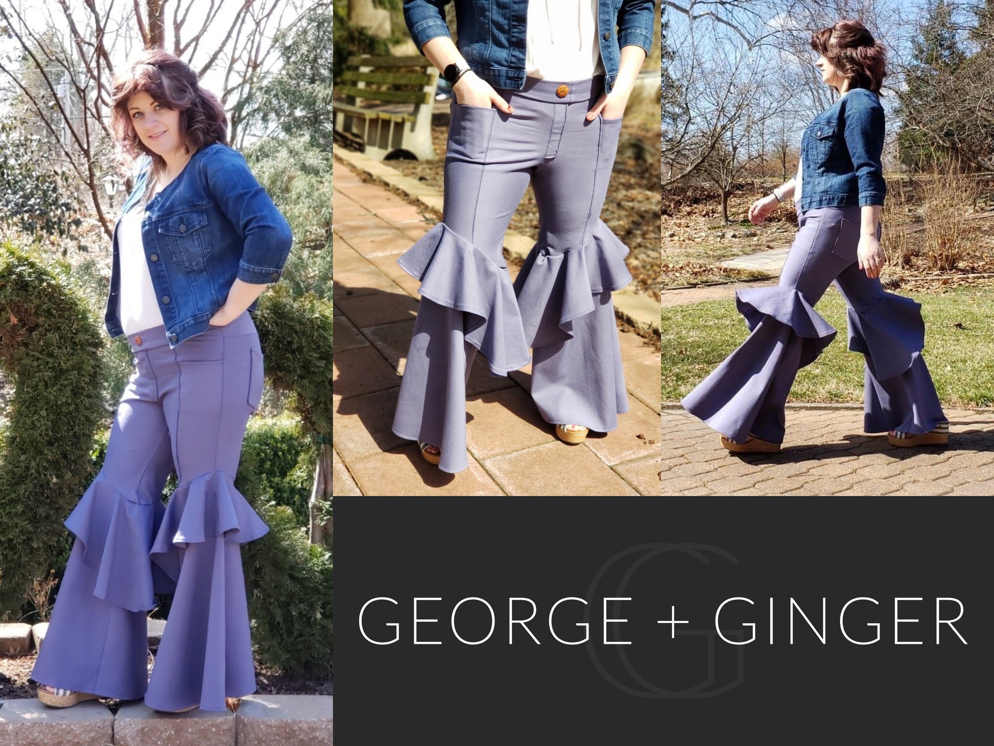The Zappa Pants are two pants designs in one pattern! Choose from a flare option with an inset or a bell version with an over-the-top cascade accent! These fitted pants include front and back pockets with a flattering back yoke and optional faux fly!