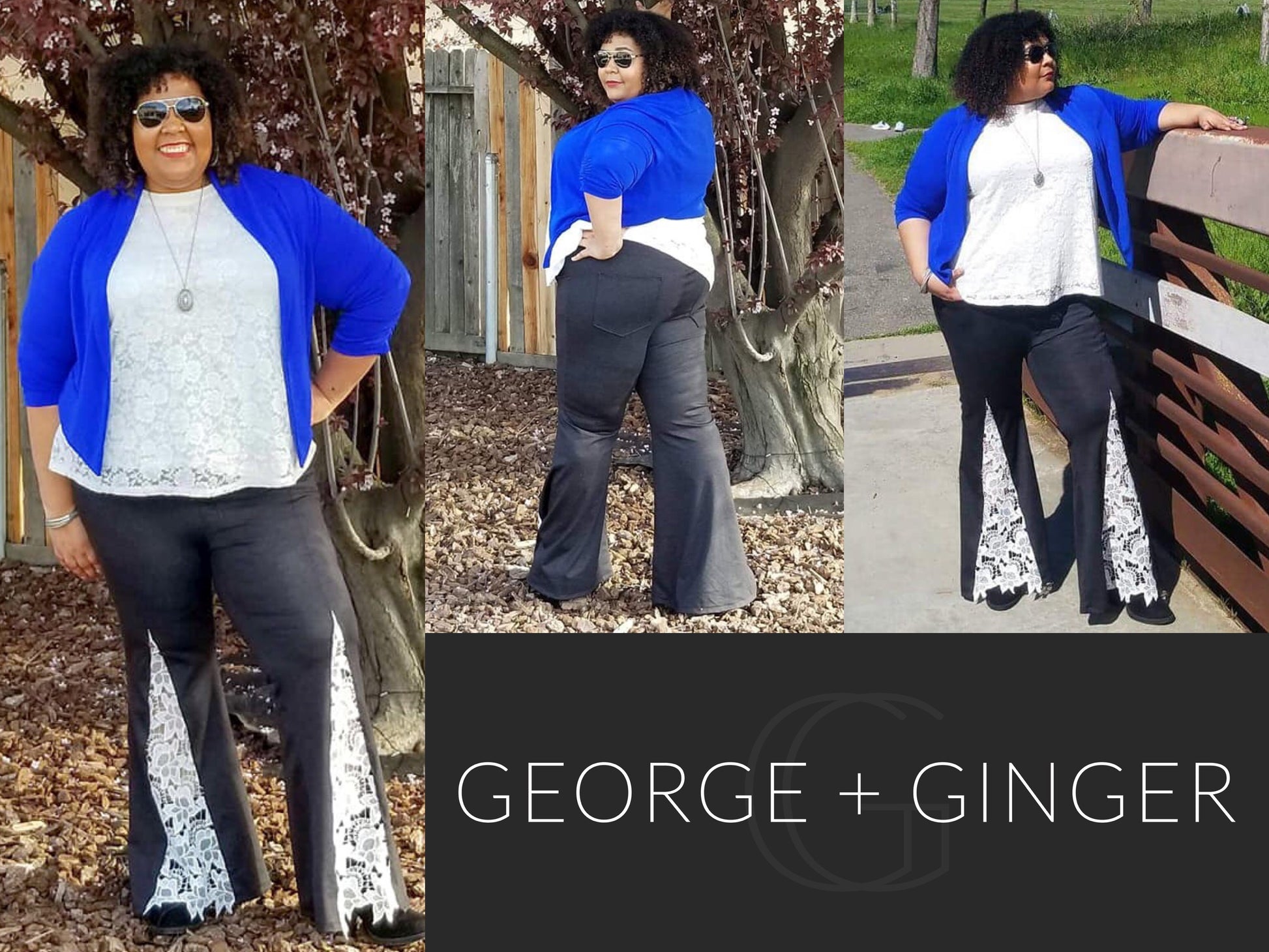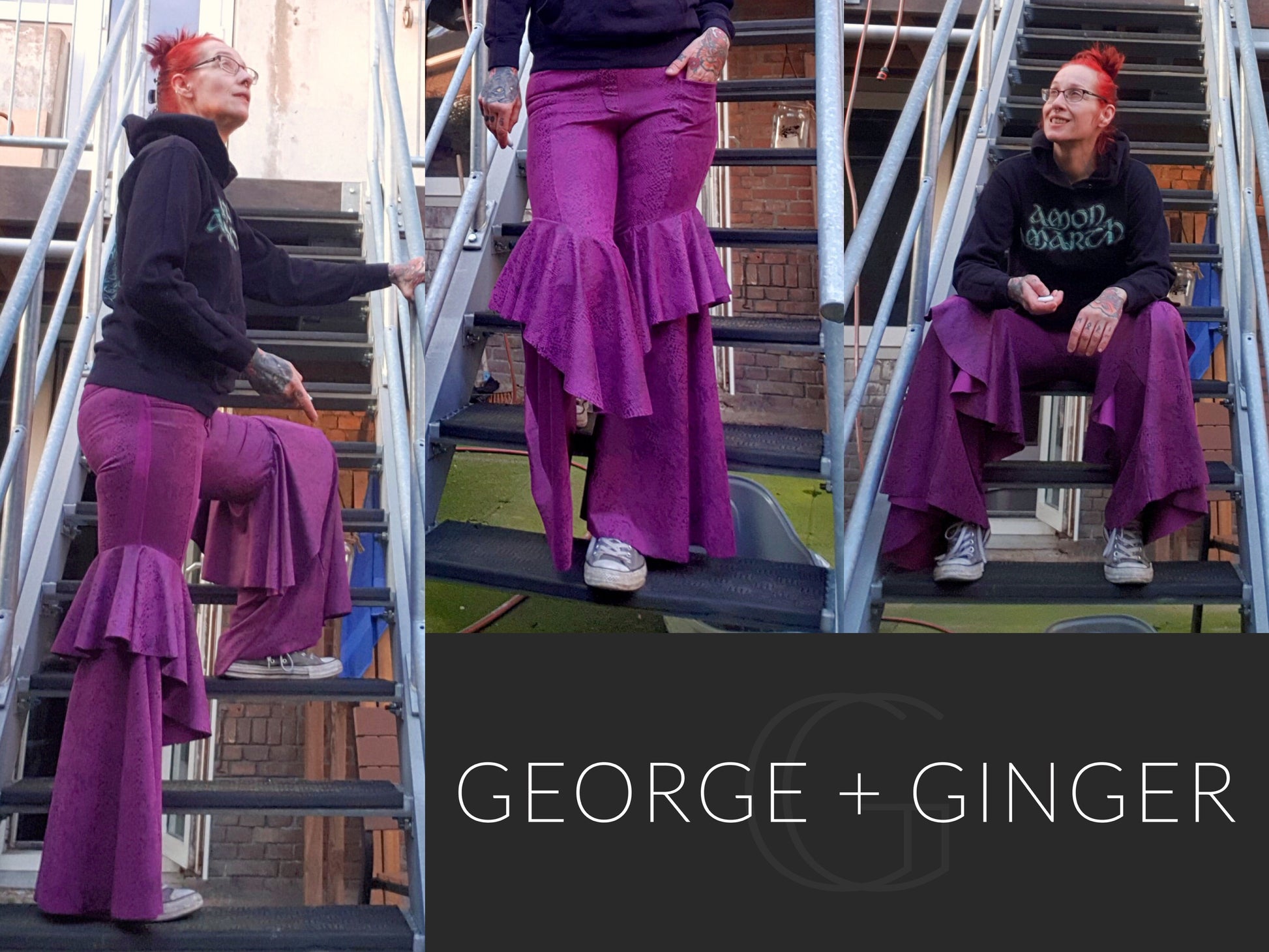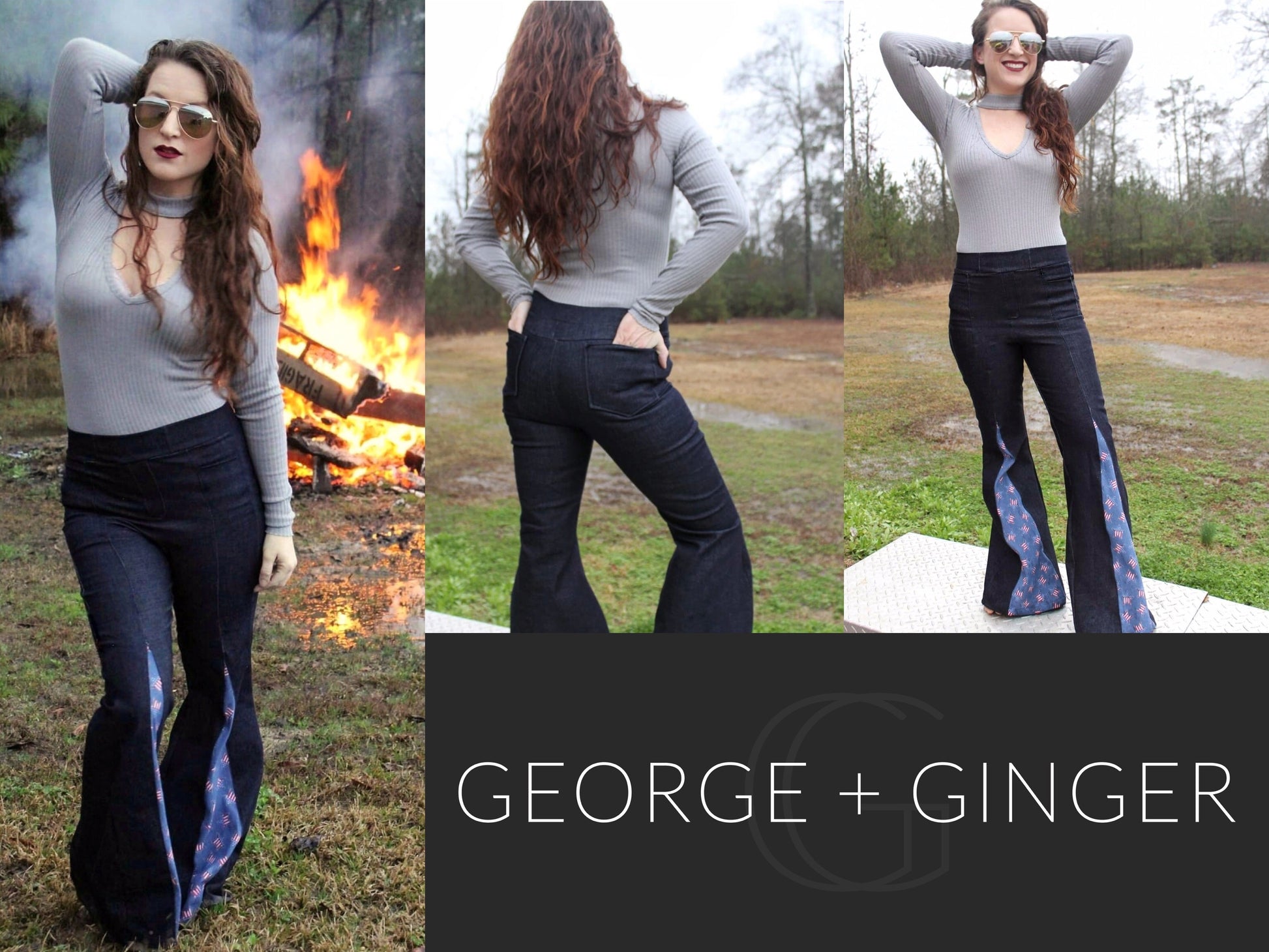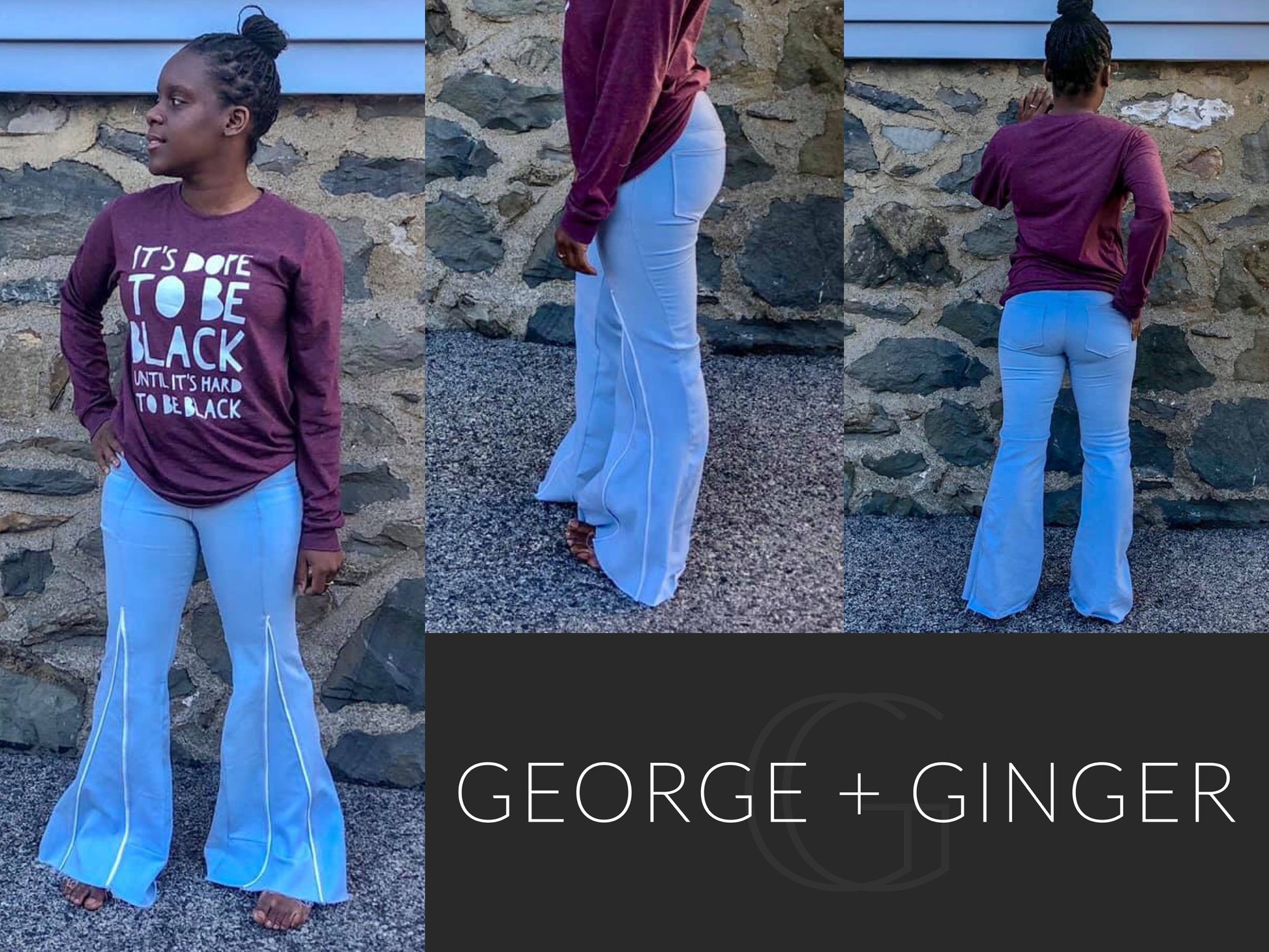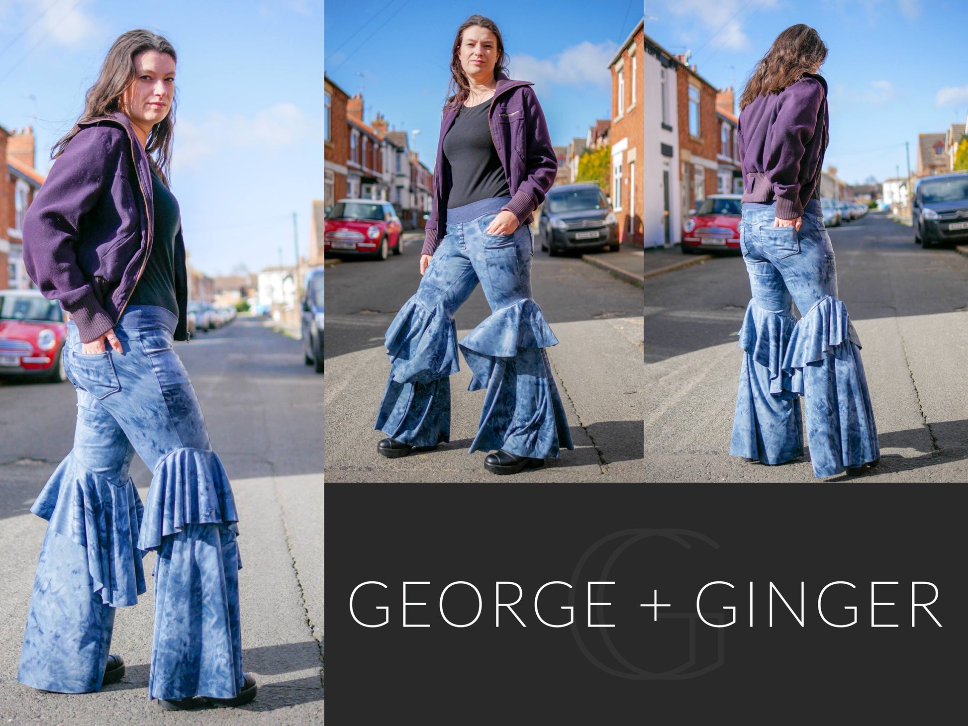 The Zappa Pants are two pants designs in one pattern! Choose from a flare option with an inset or a bell version with an over-the-top cascade accent! These fitted pants include front and back pockets with a flattering back yoke and optional faux fly!