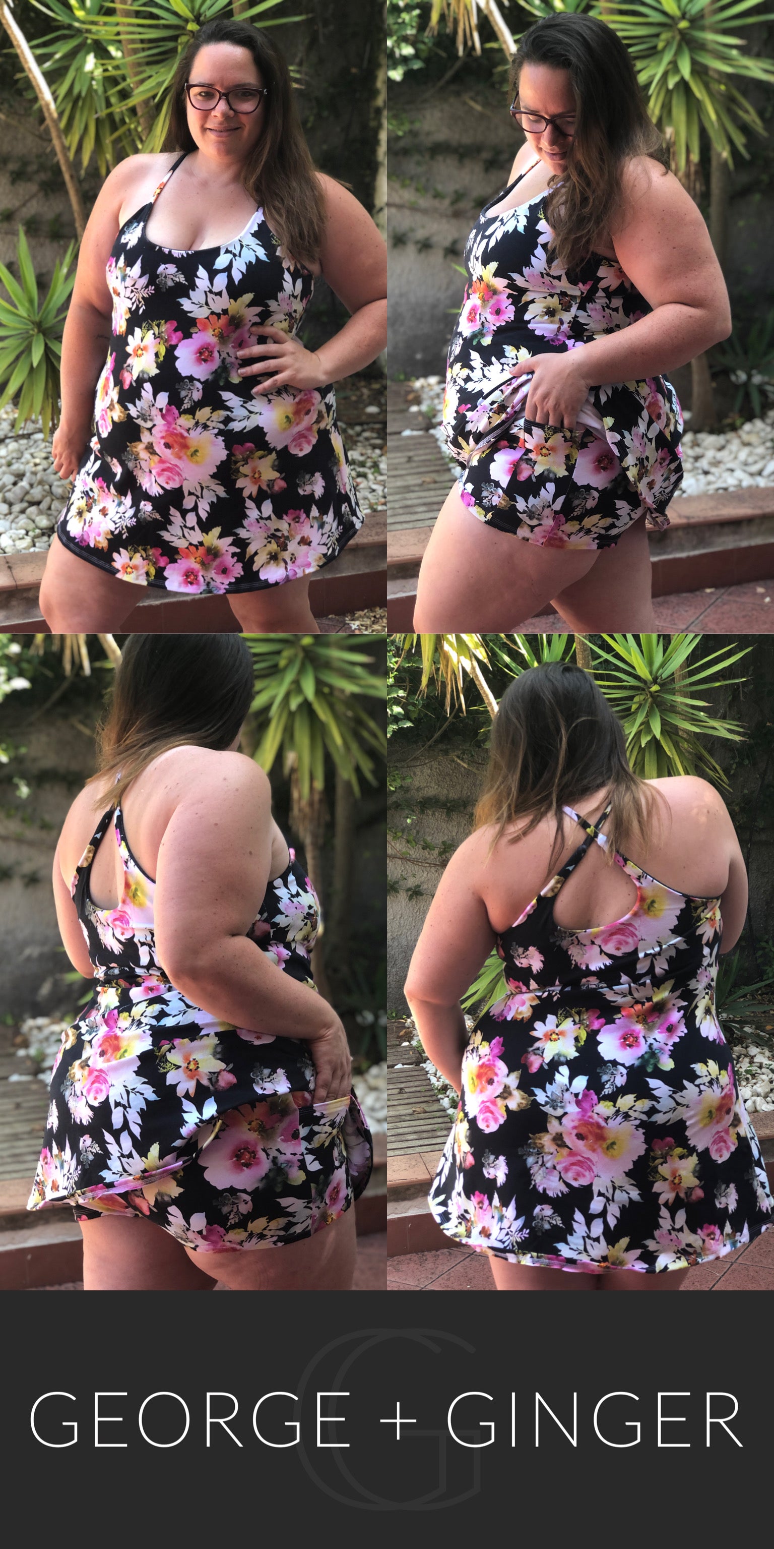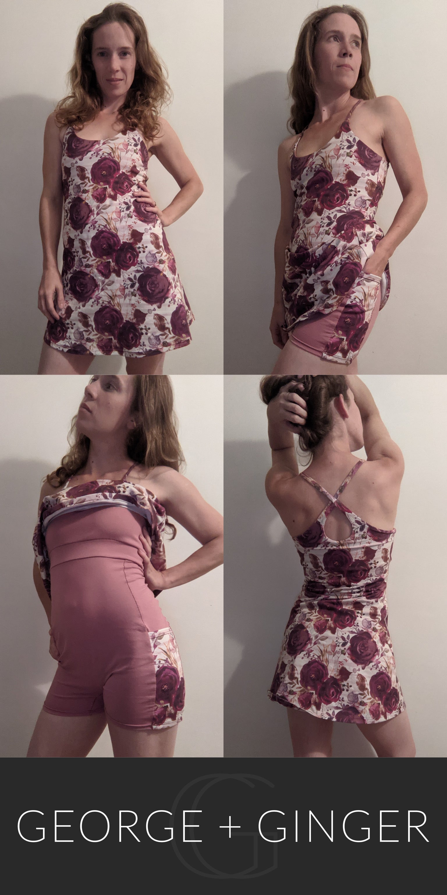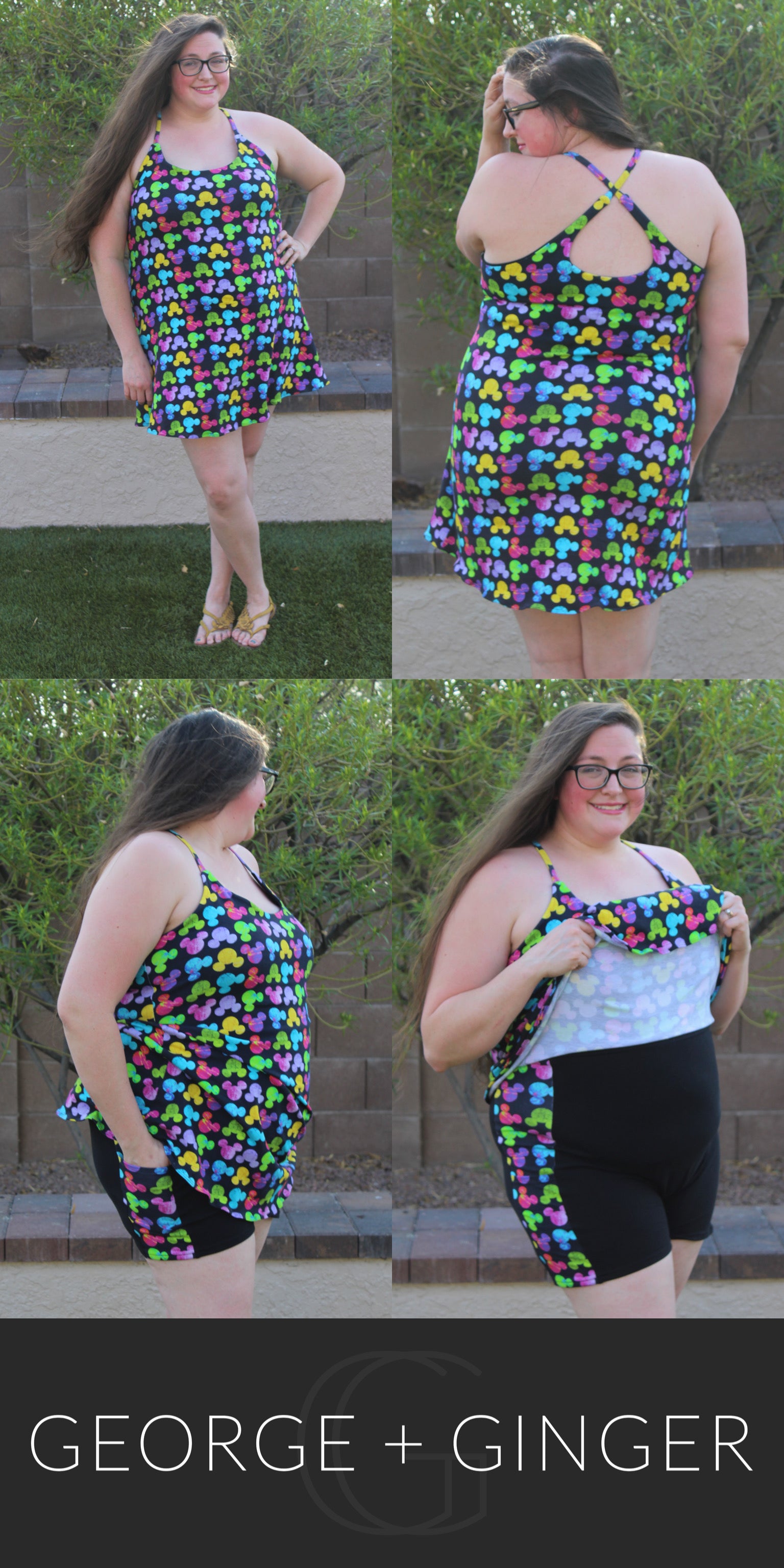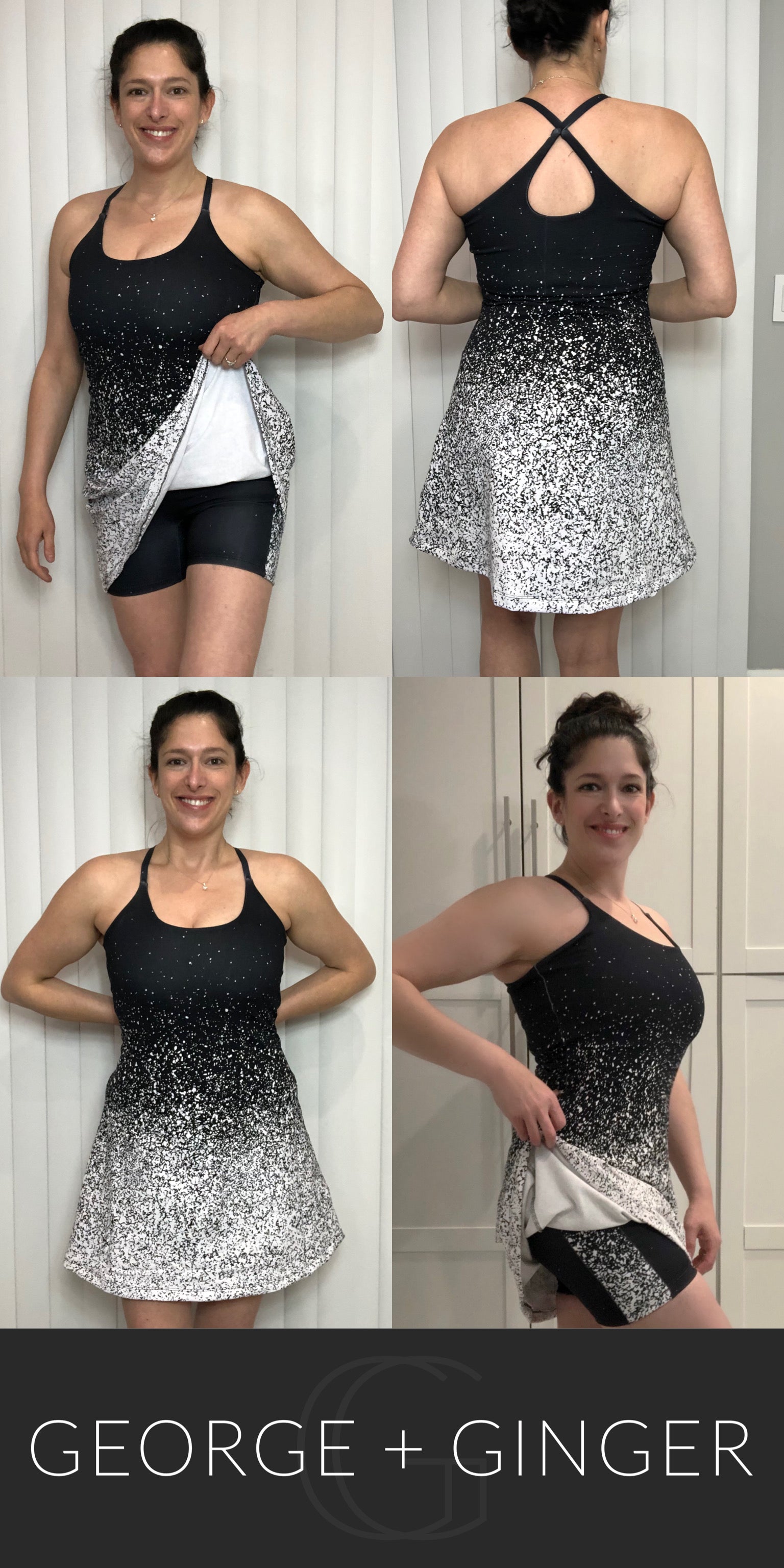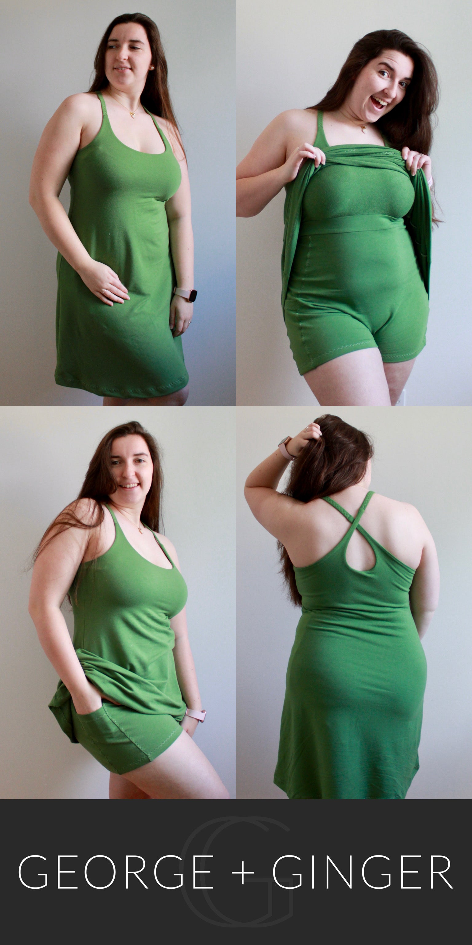 The Solar Sundress is a strappy, all-in-one design--featuring a built-in shelf bra and attached shorts for maximum support, booty coverage and overall comfort on the go!  Side seam pockets are also included for added convenience.