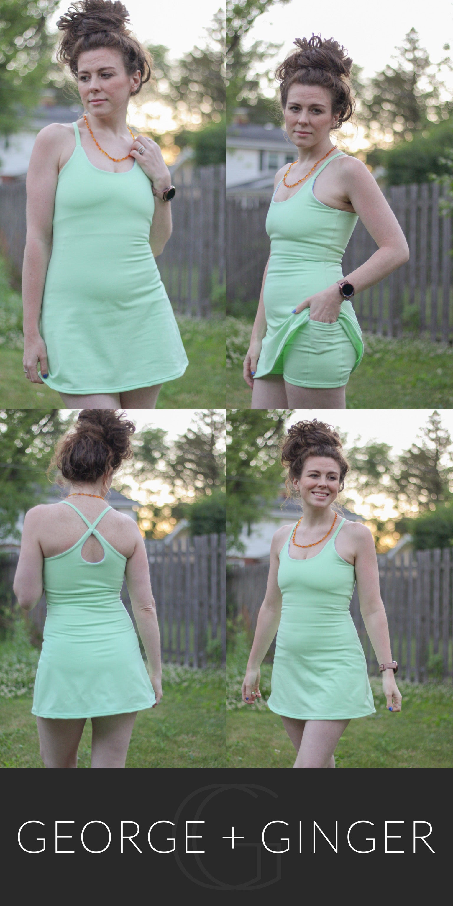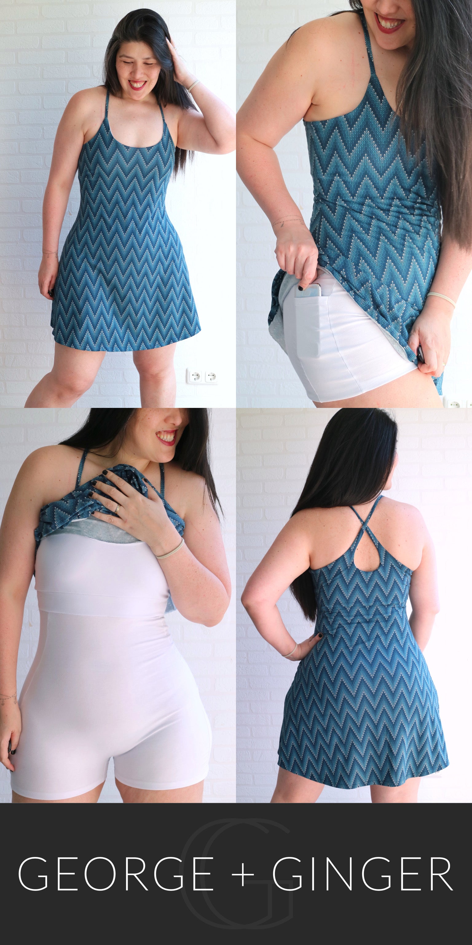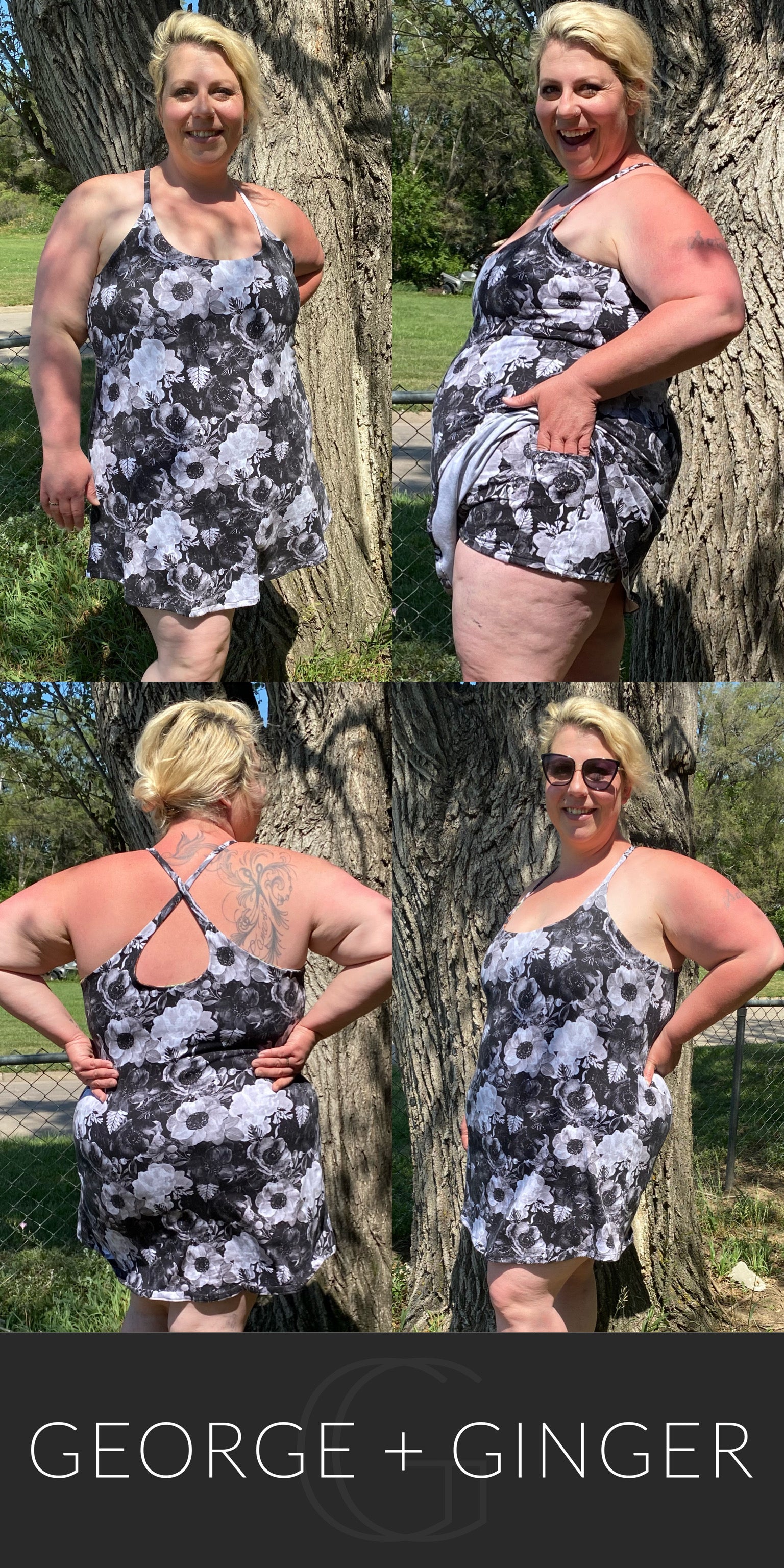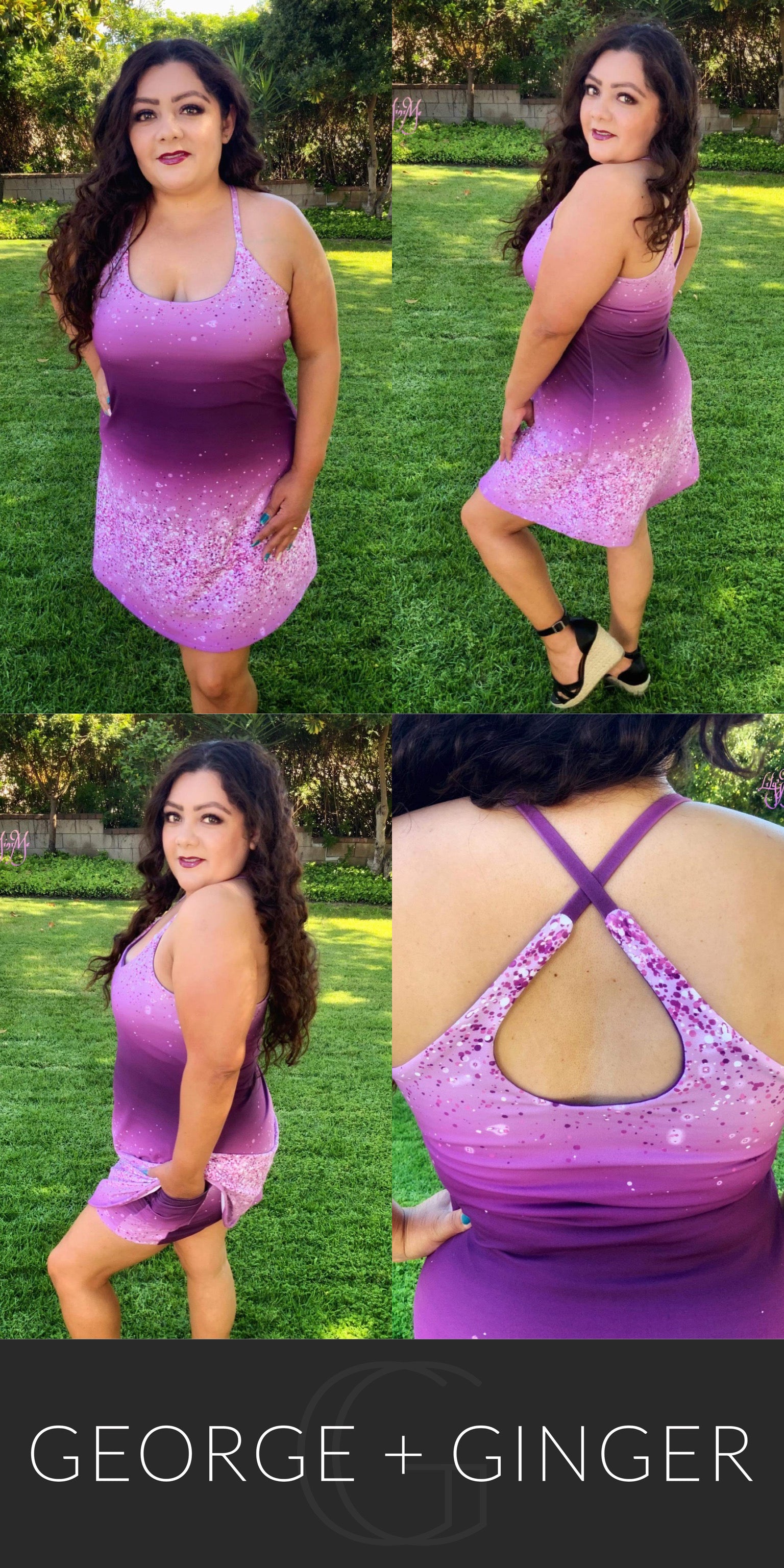 The Solar Sundress is a strappy, all-in-one design--featuring a built-in shelf bra and attached shorts for maximum support, booty coverage and overall comfort on the go!  Side seam pockets are also included for added convenience.