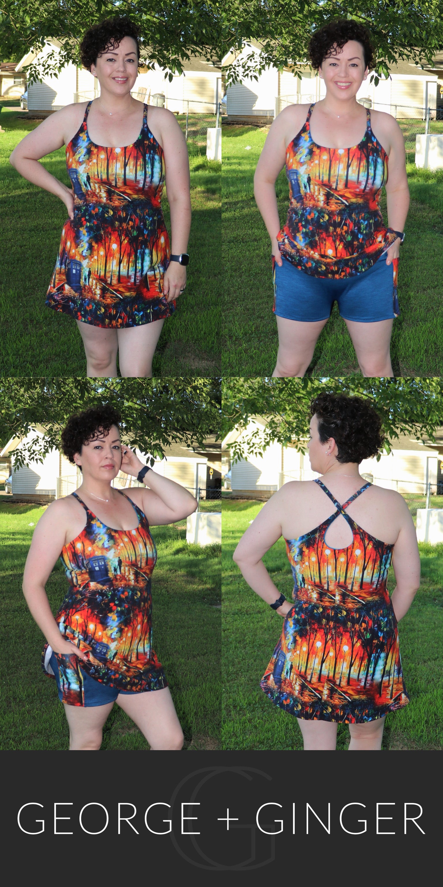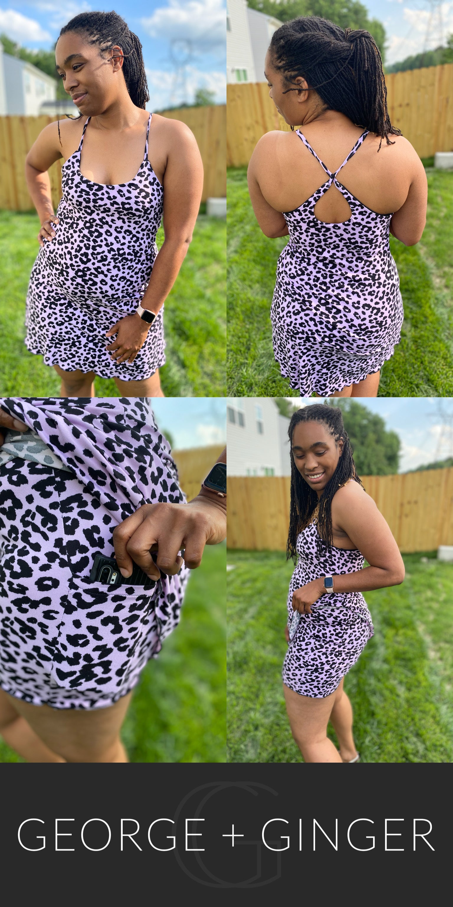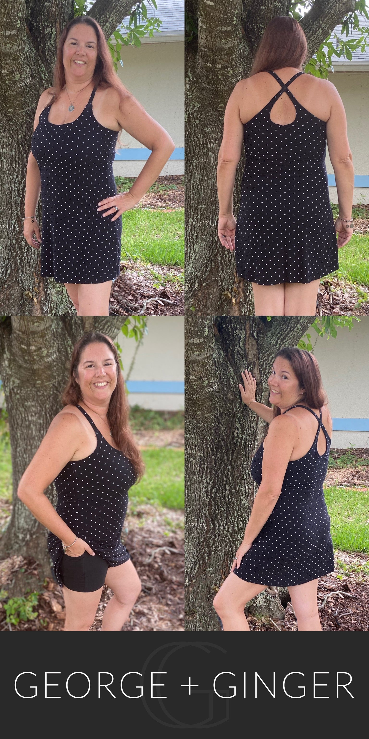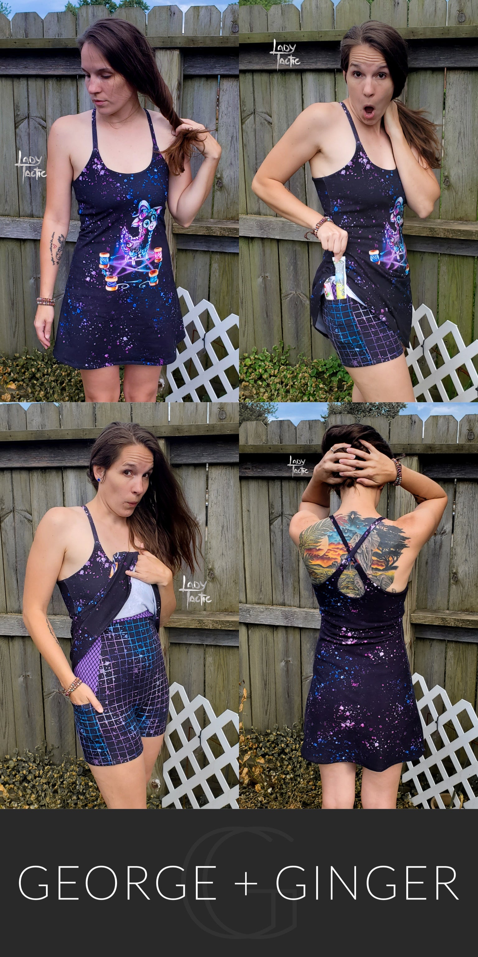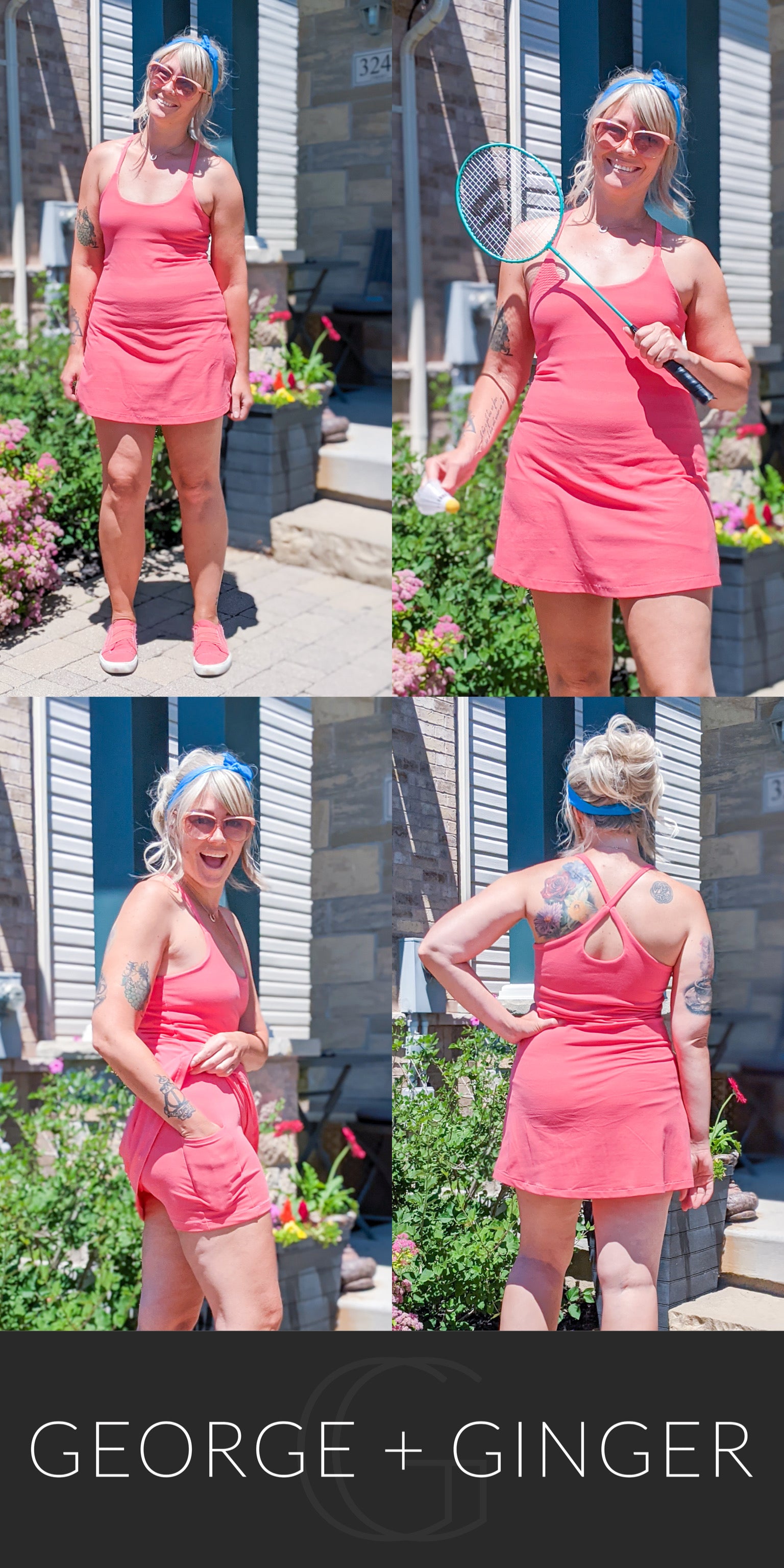 The Solar Sundress is a strappy, all-in-one design--featuring a built-in shelf bra and attached shorts for maximum support, booty coverage and overall comfort on the go!  Side seam pockets are also included for added convenience.