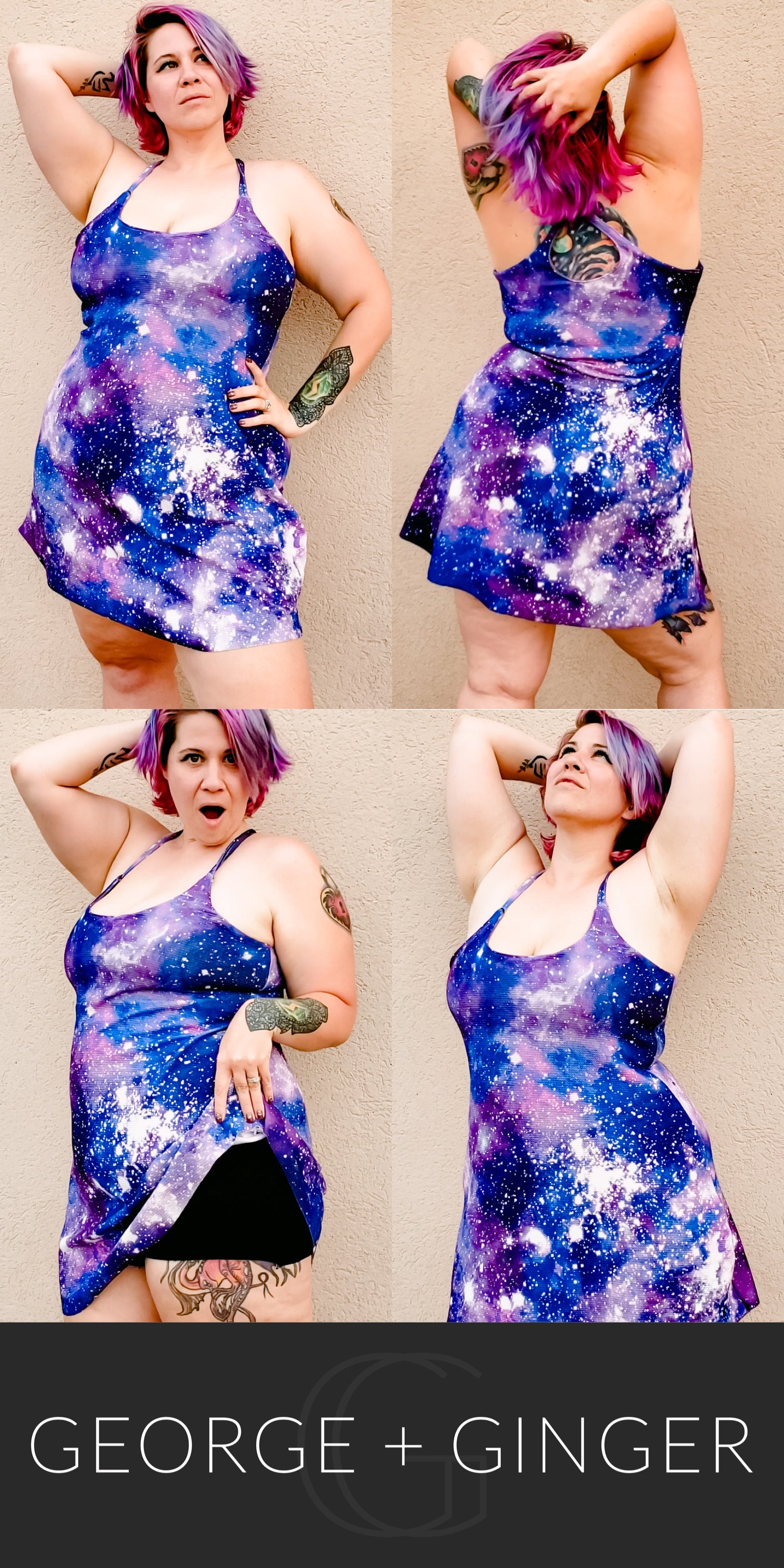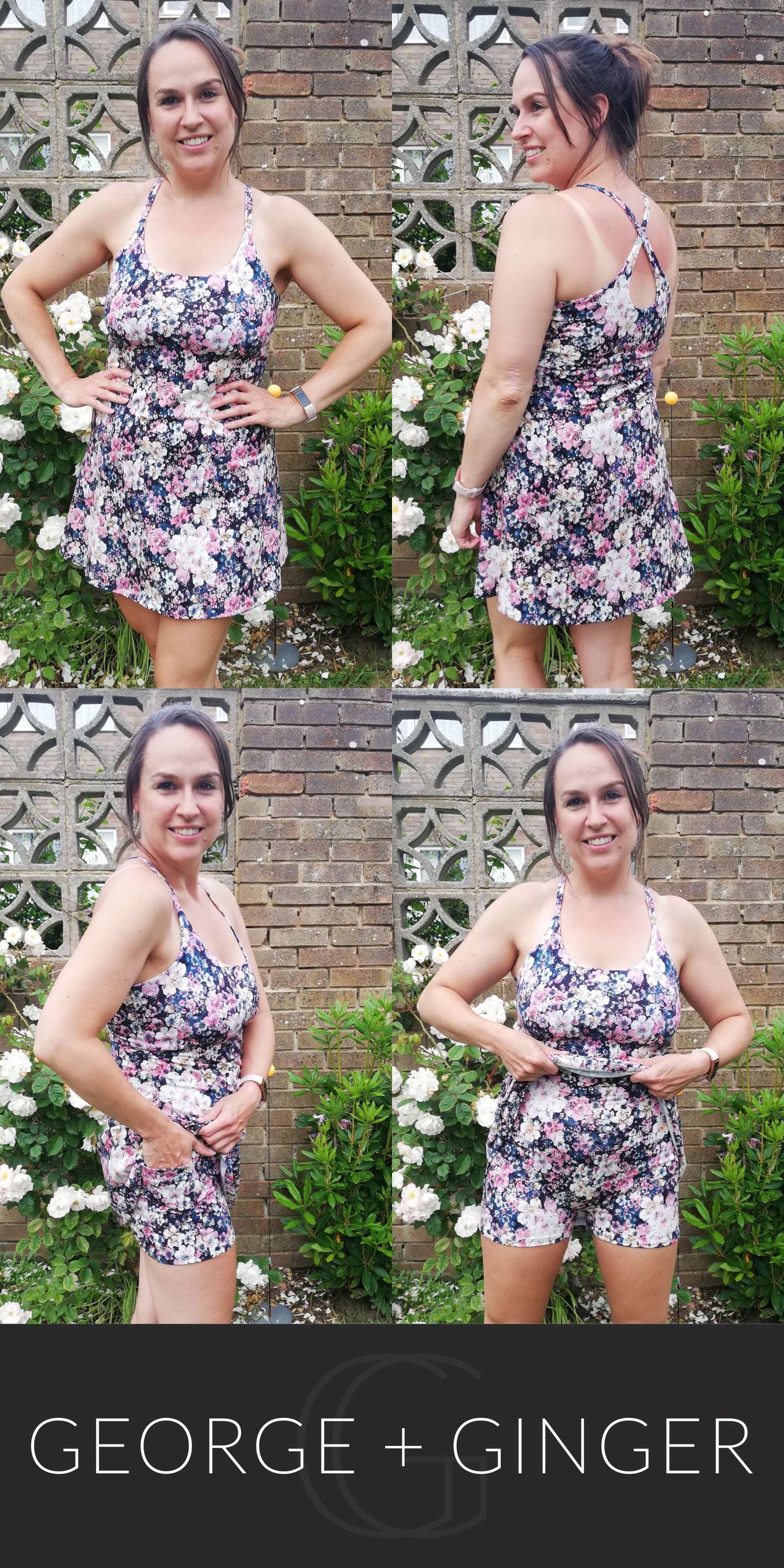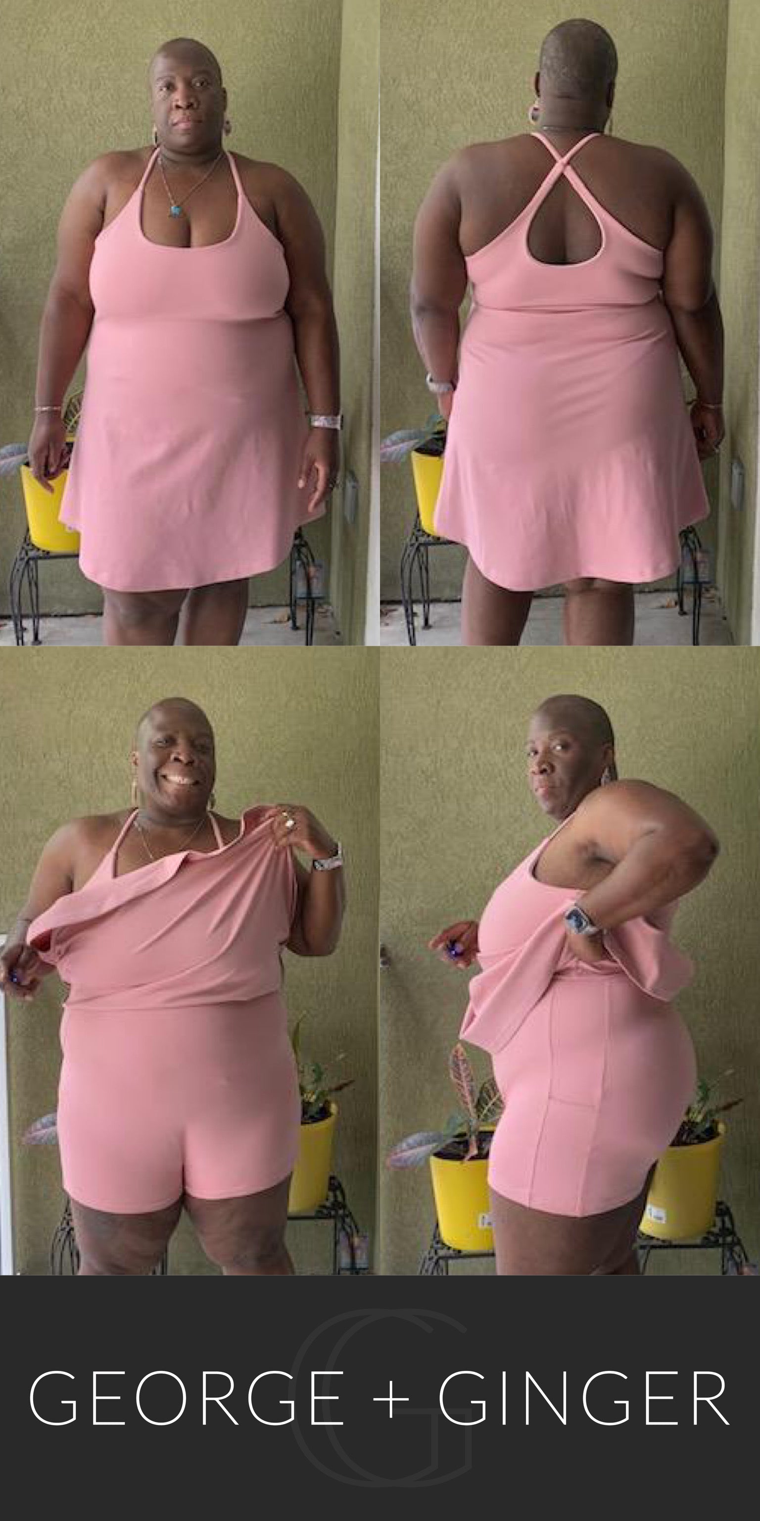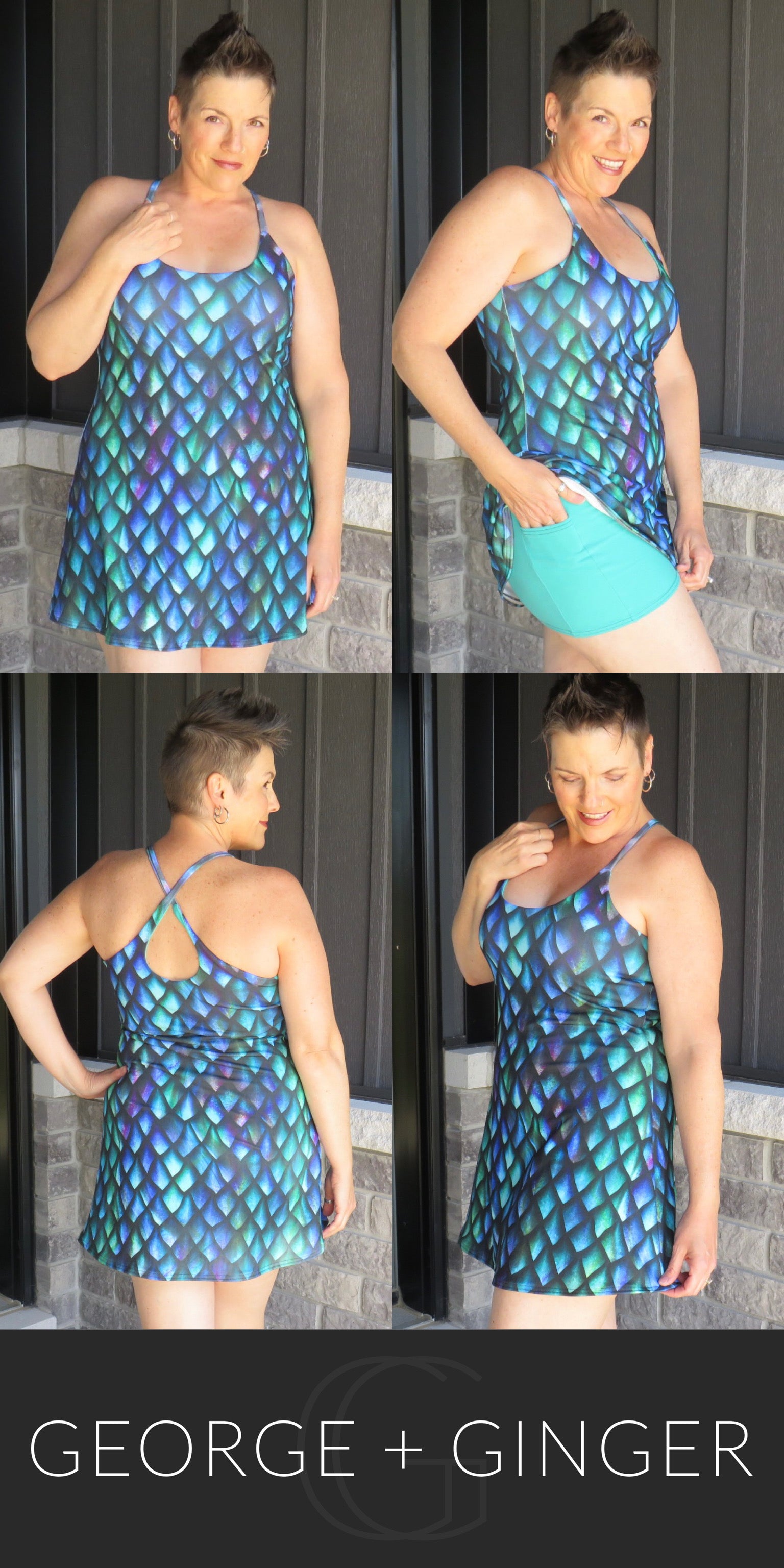 The Solar Sundress is a strappy, all-in-one design--featuring a built-in shelf bra and attached shorts for maximum support, booty coverage and overall comfort on the go!  Side seam pockets are also included for added convenience.