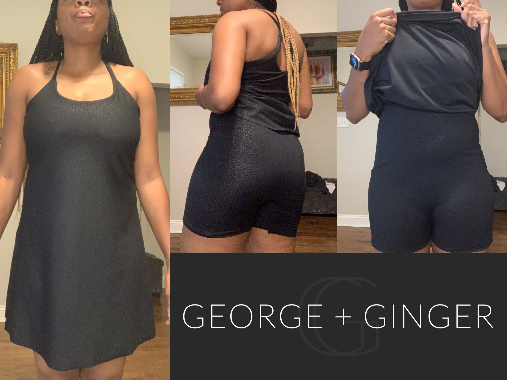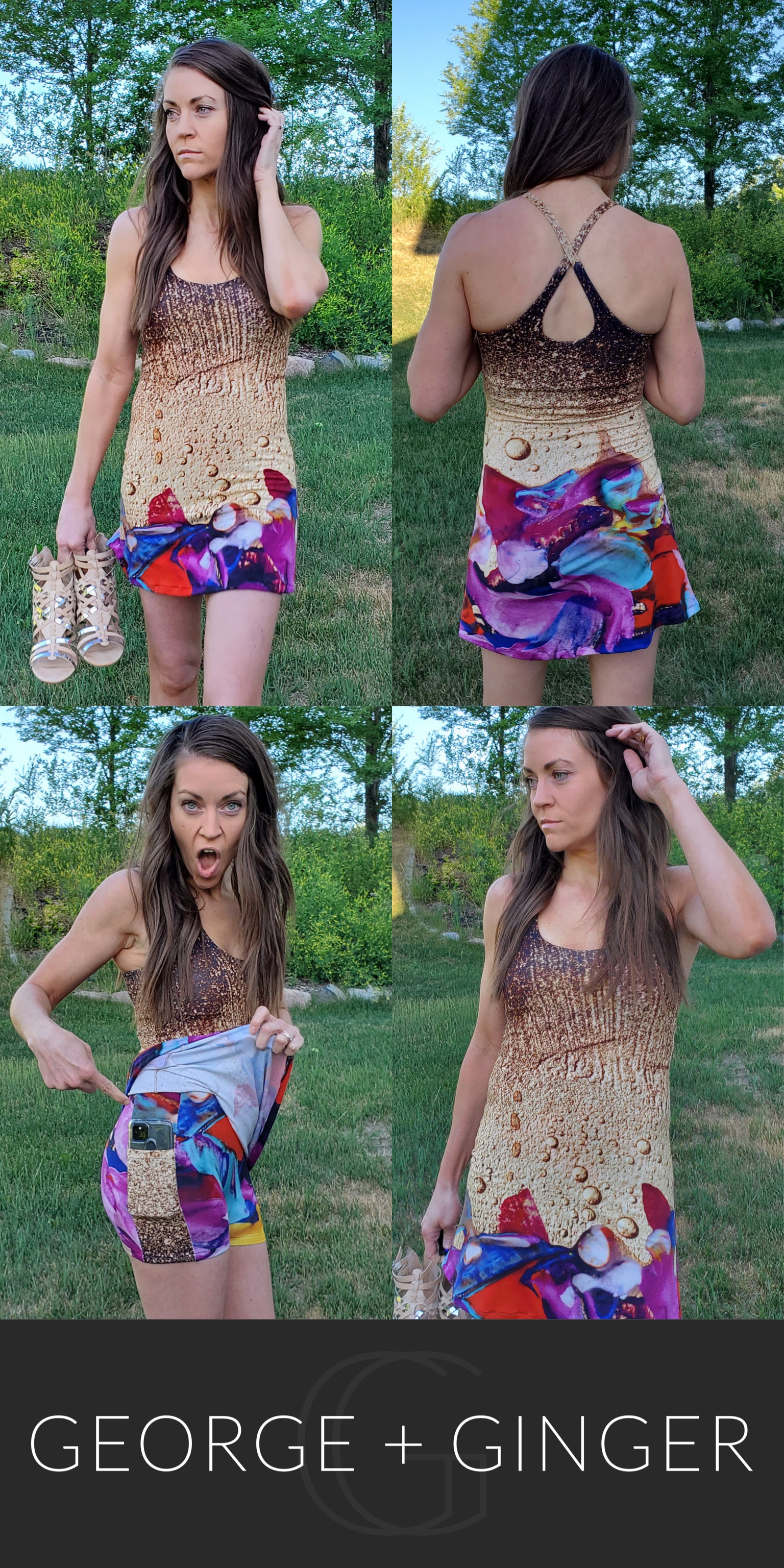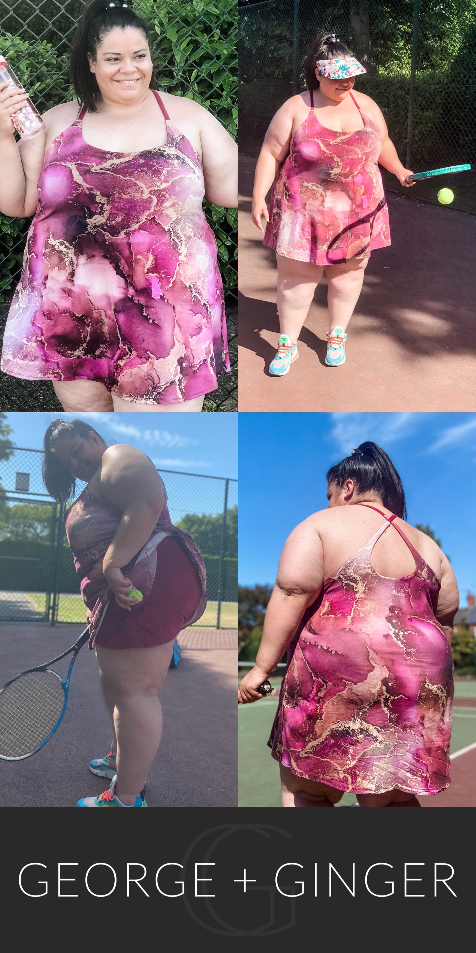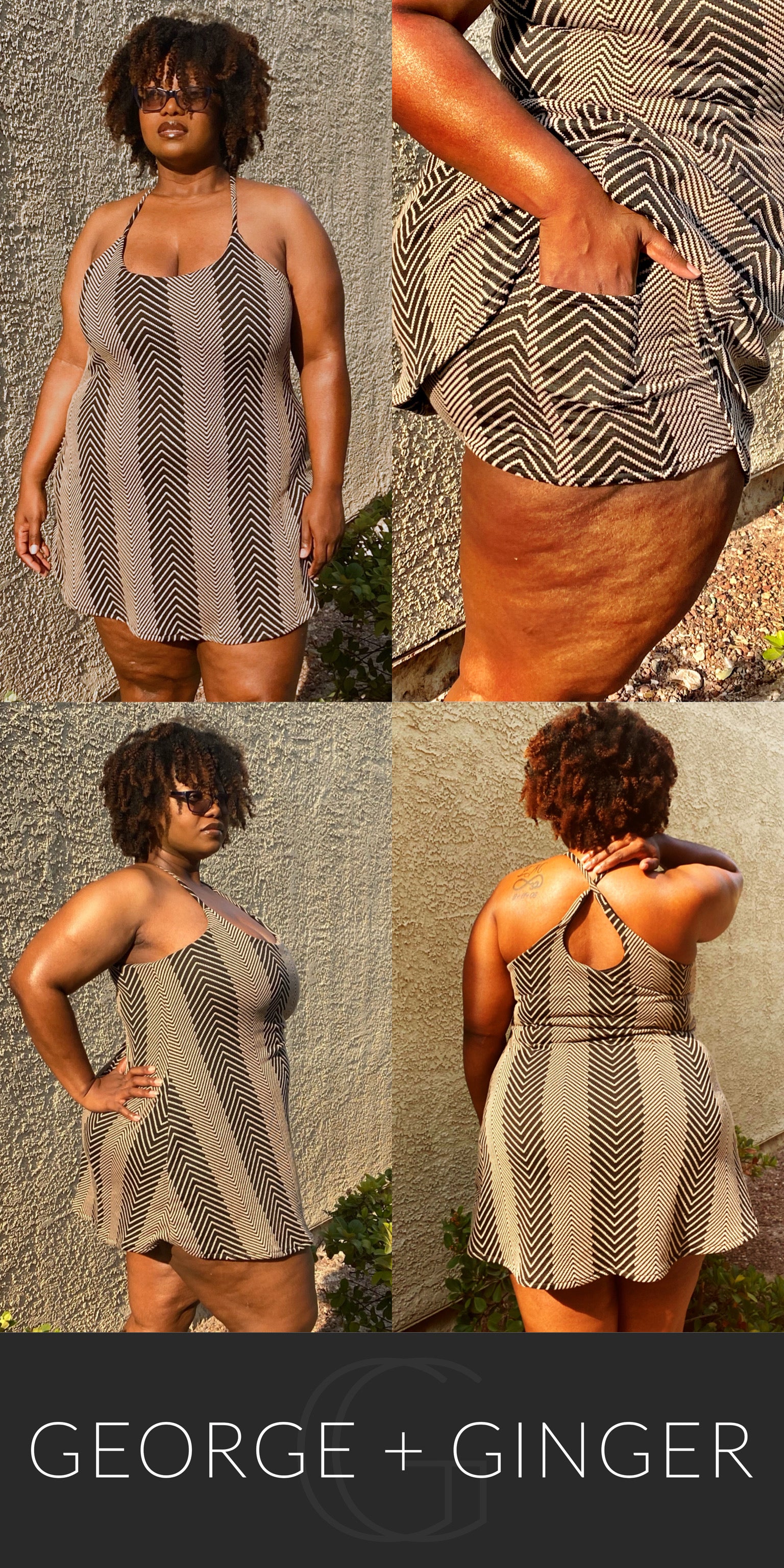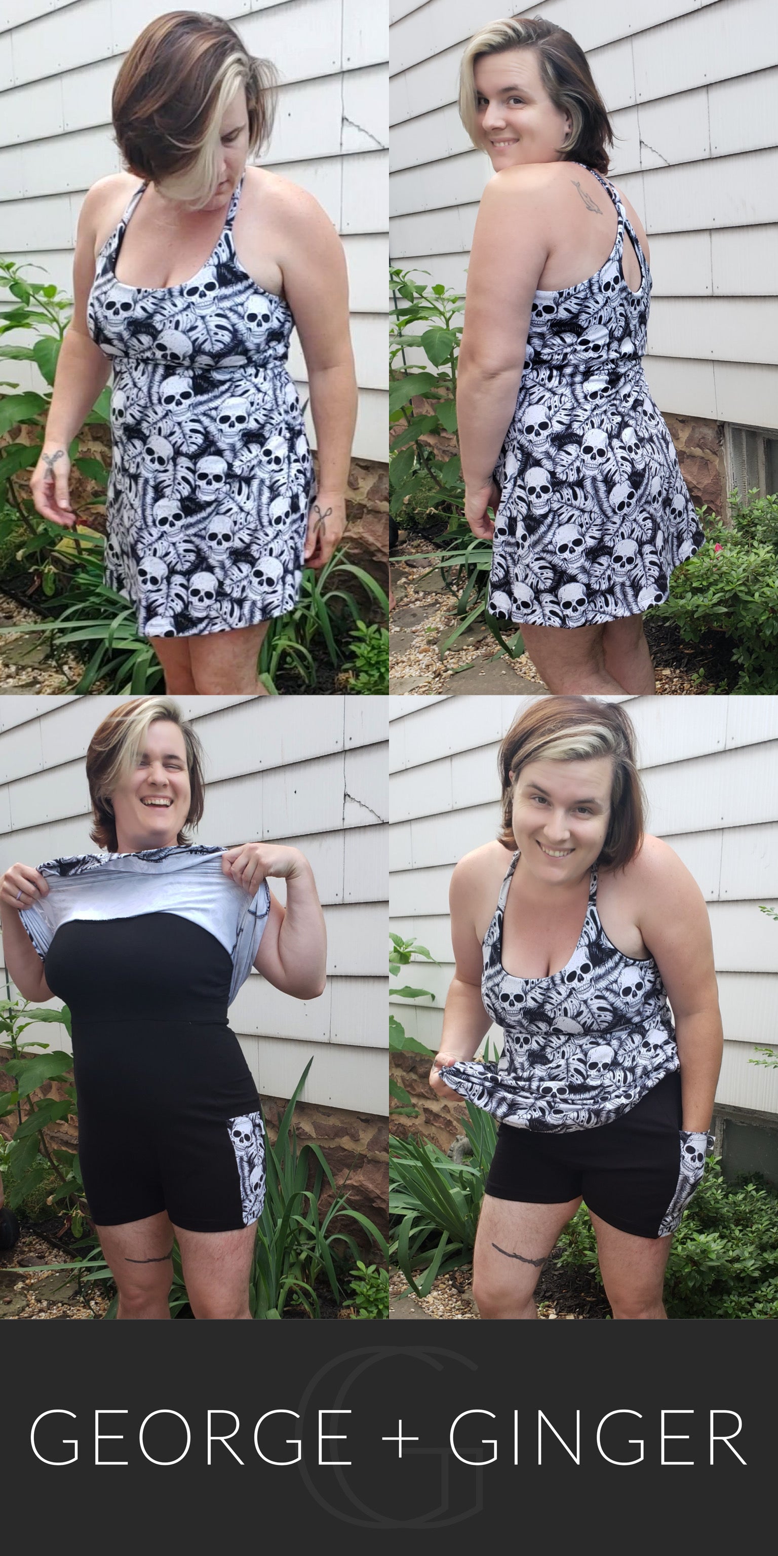 The Solar Sundress is a strappy, all-in-one design--featuring a built-in shelf bra and attached shorts for maximum support, booty coverage and overall comfort on the go!  Side seam pockets are also included for added convenience.