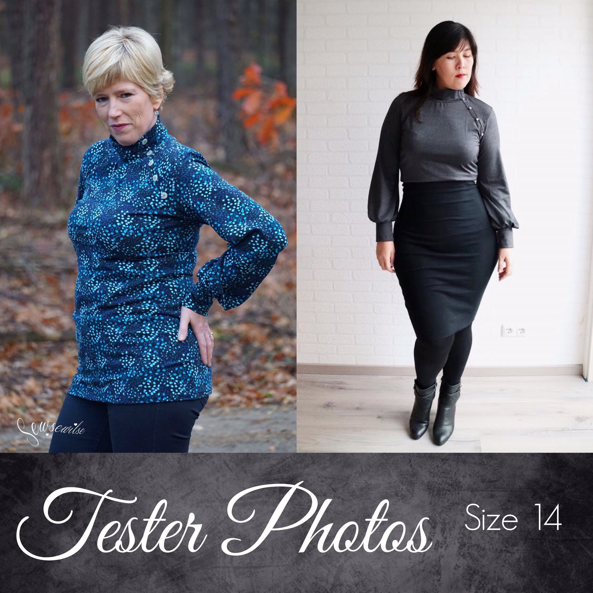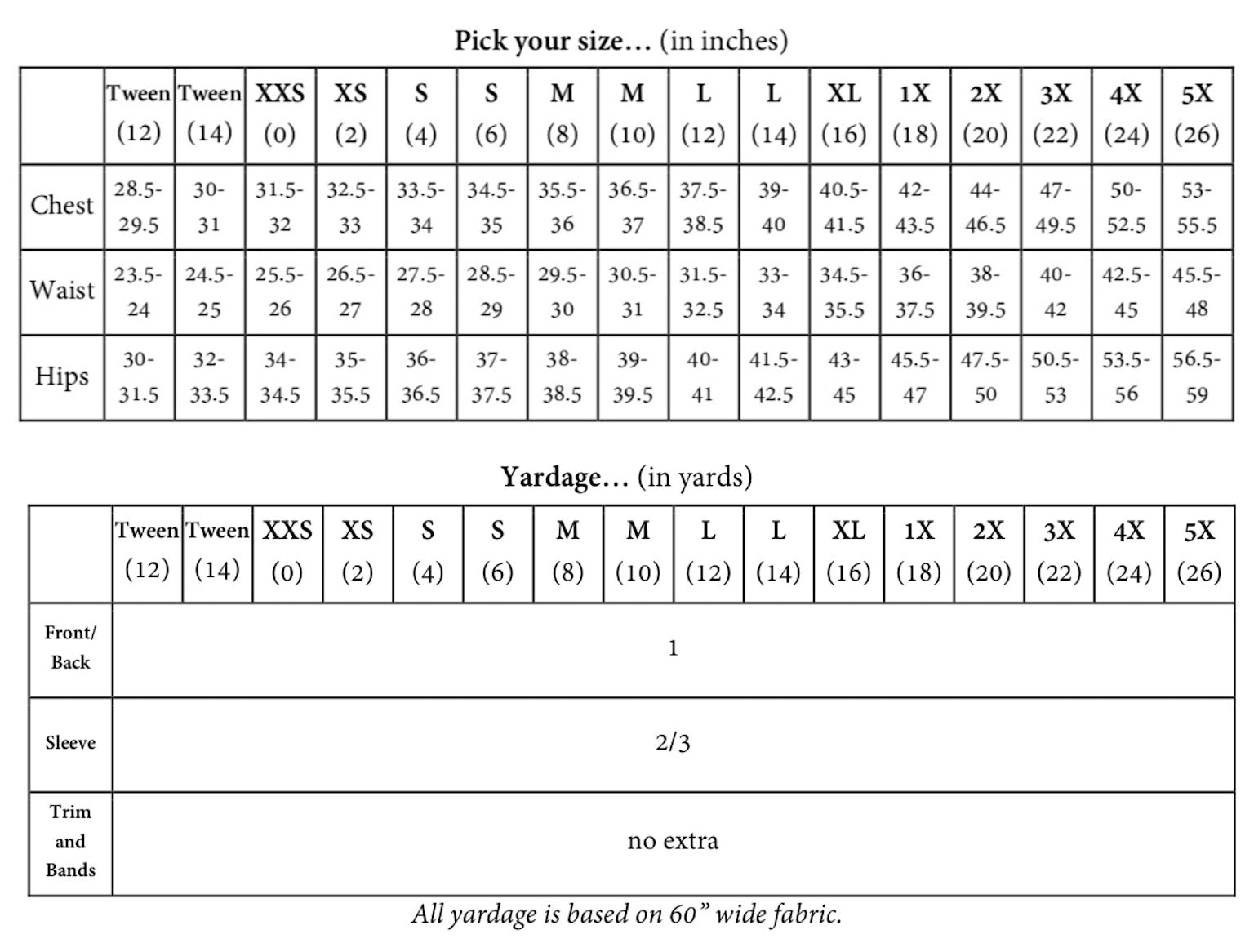 Suggested fabric for the top is a medium to heavyweight 2-way or 4-way stretch knit with structure and good recovery, such as ponte, Liverpool or cotton lycra. However, any knit fabric with at least 50% stretch will work, but may not give the same results.