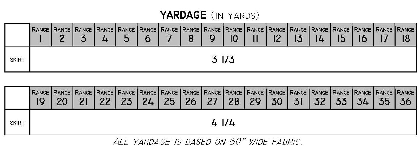 The most popular types of fabrics for the skirt are flowy wovens with a lot of drape, such as voile, silk and georgette. Quilters cotton is NOT recommended. 1.5" non-roll elastic is needed for the waistband.