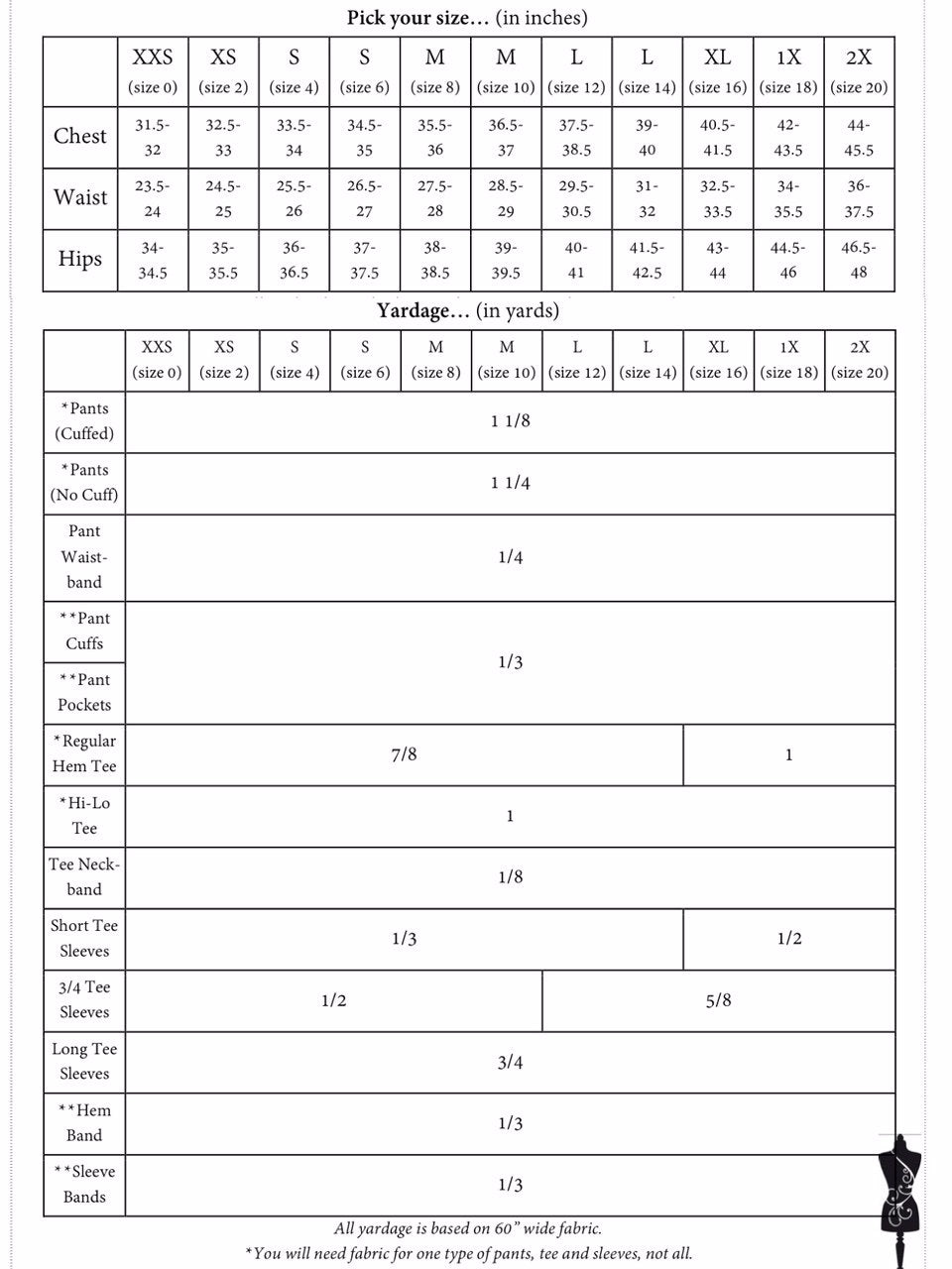 --Yardage requirements and notions list