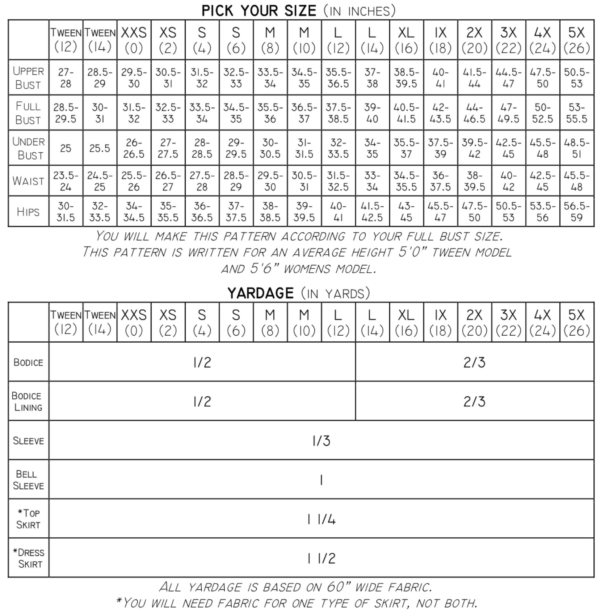 • Yardage requirements and notions list