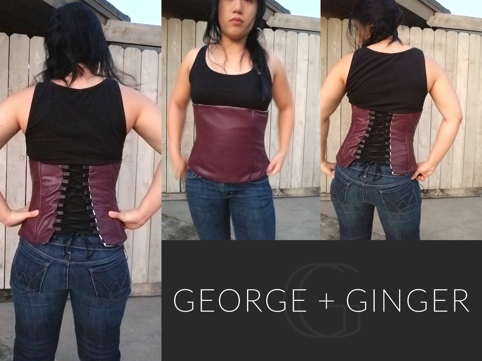 Suggested fabric is medium to heavyweight woven such as duck cloth, brocade, velvet, etc. You will also need heavyweight fusible interfacing and boning (both styles) and hook/eye tape (for front hook option only).
