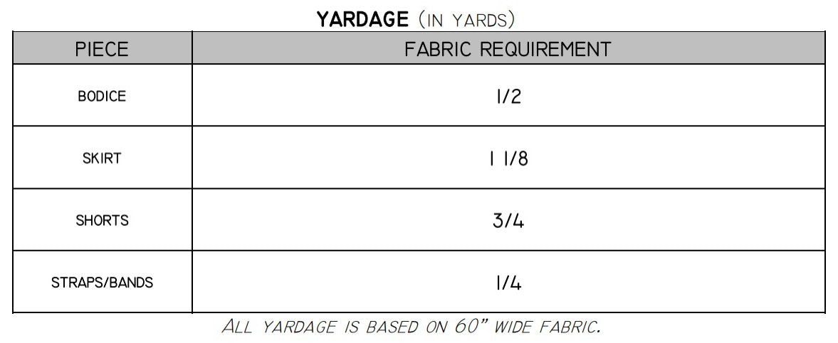 Suggested fabric for this pattern is a 4-way knit with at least 50% stretch, such as cotton lycra or athletic knit.