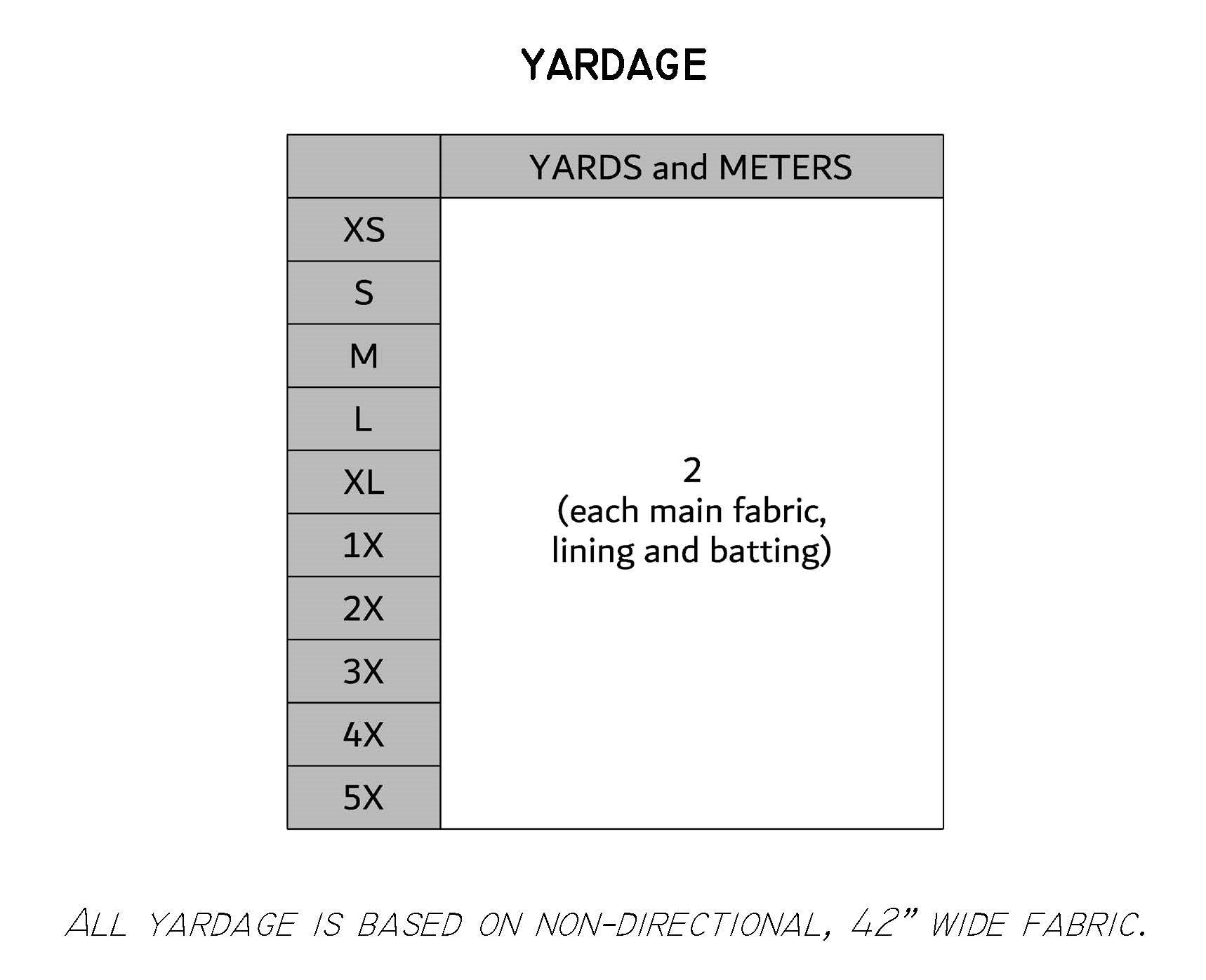 Yardage requirements and notions list
