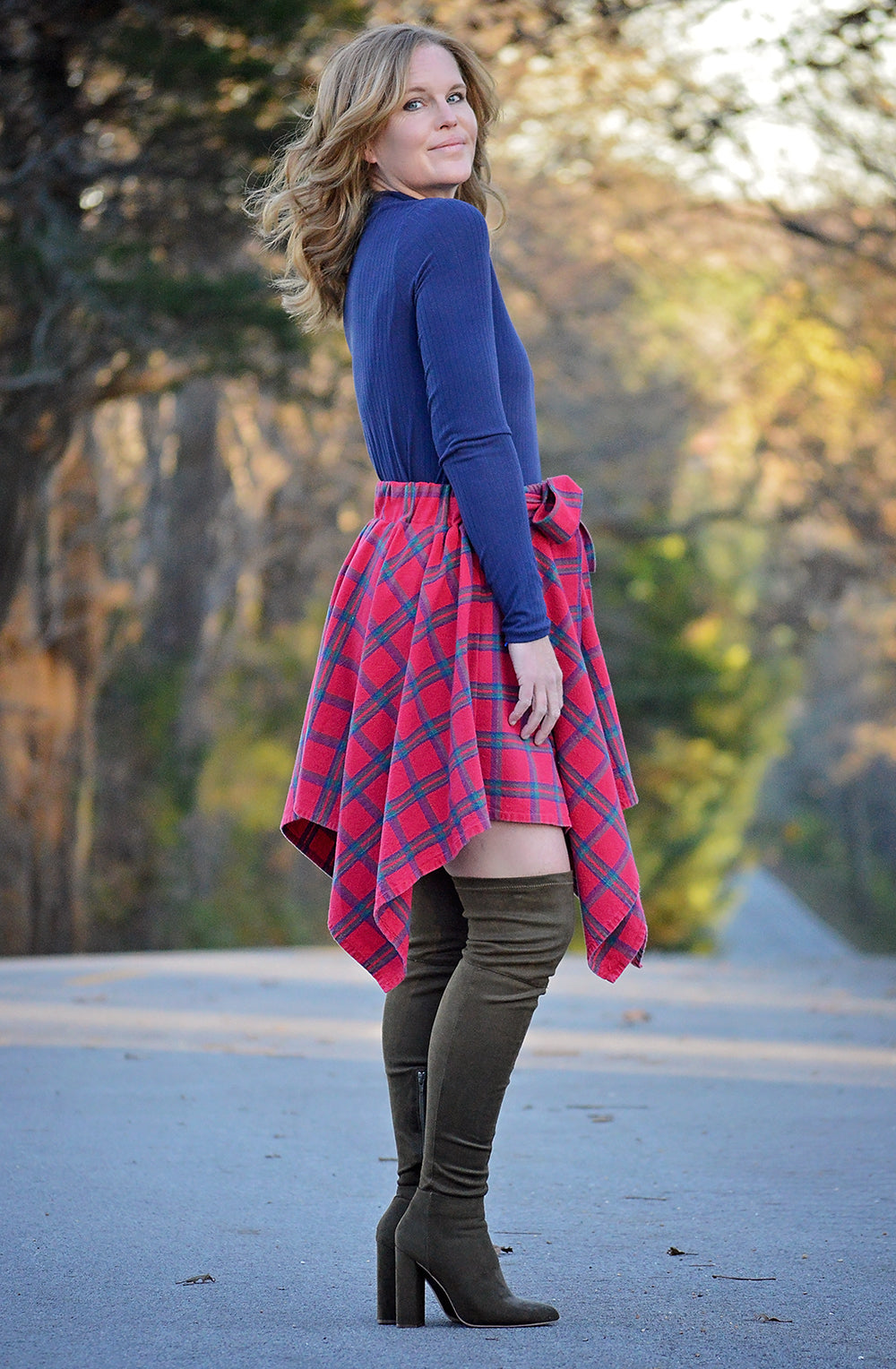 Suggested fabric for this skirt is a light-to-medium weight woven fabric, such as flannel or linen. However, you could also use knit.