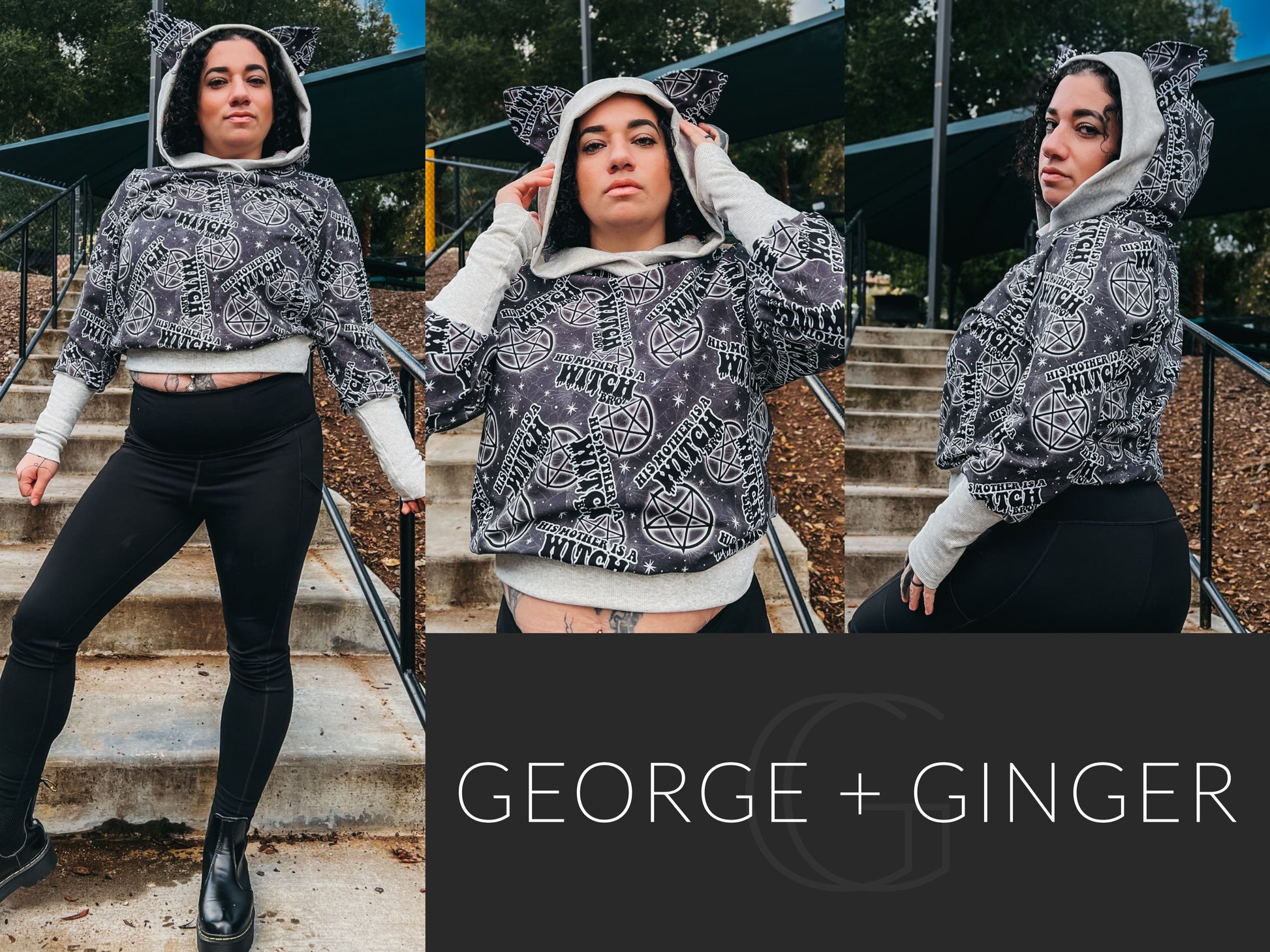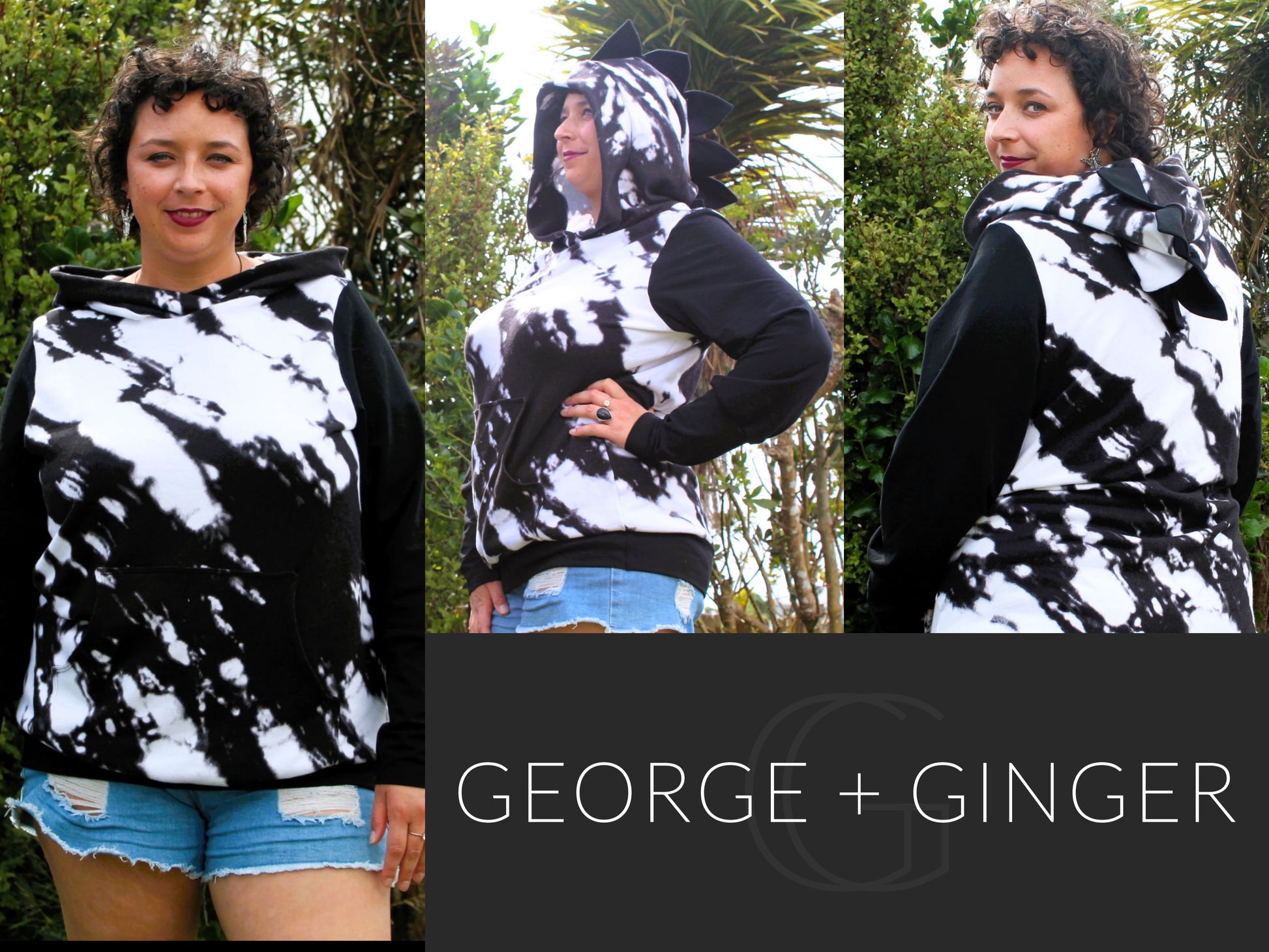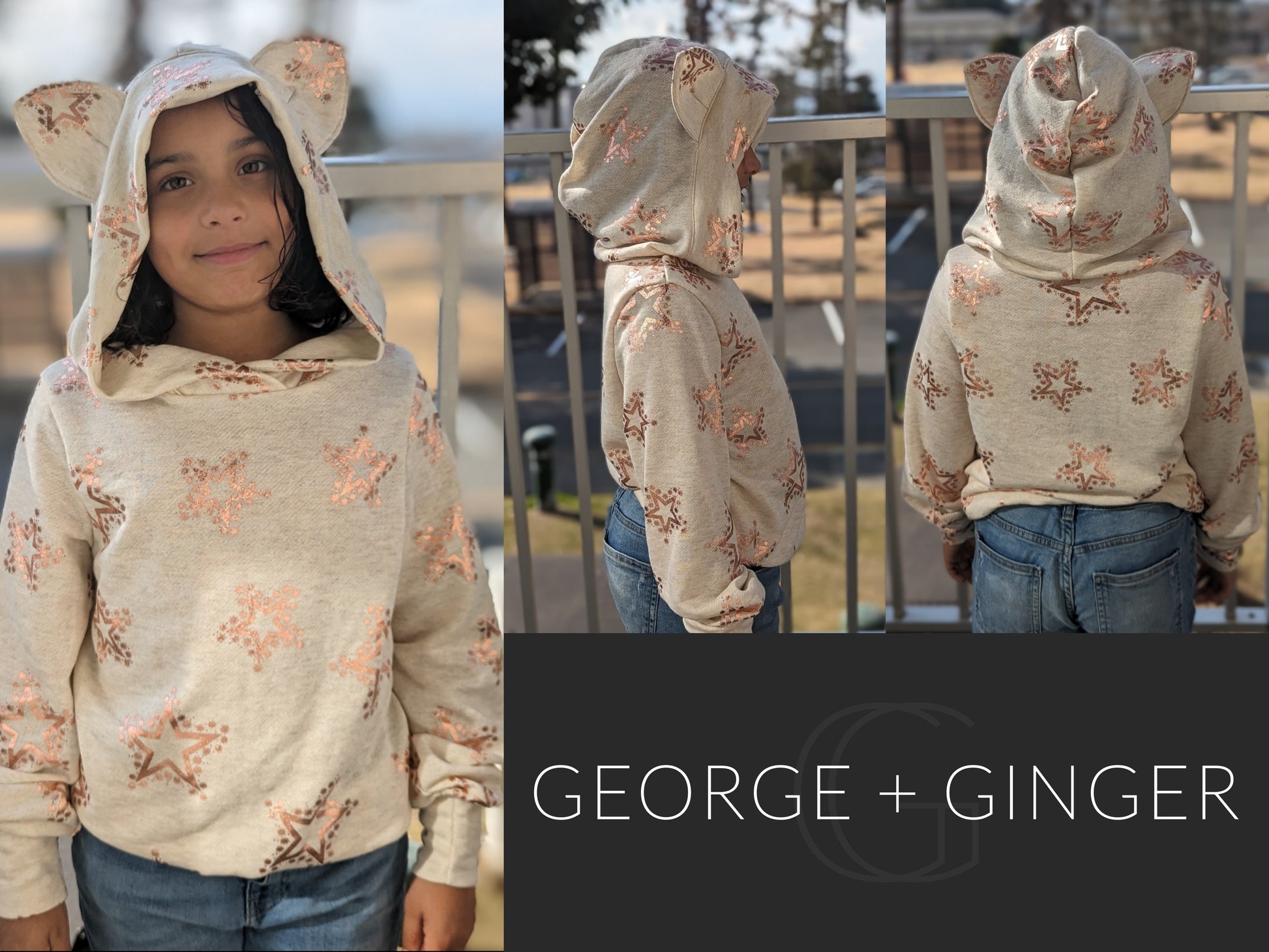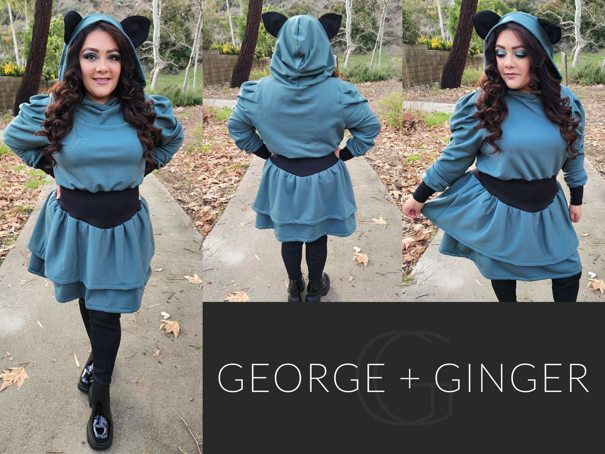 The Trefoil Hoodie Dress will be the last hoodie pattern you will ever need! Three lengths (bodice, cropped and regular), three sleeve styles (basic, cropped and pleated) and three skirt options (basic, ruched and ruffle)! Not to mention the added accessories such as a kangaroo pocket, four different sets of ears and cute dino spikes for the banded hood! So many choices…